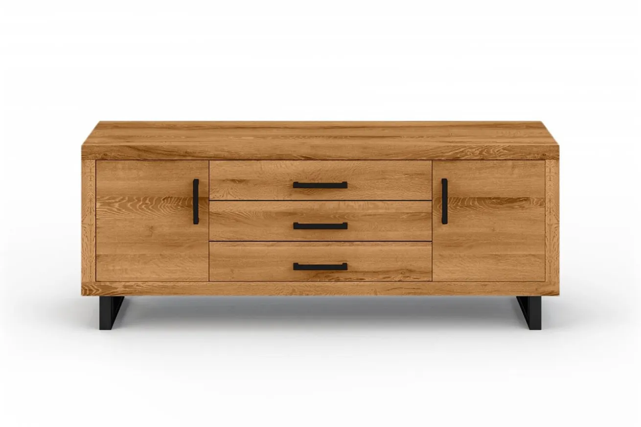 Anrichte, 100% Massivholz, rustikales Eichenholz, 2-türig, 3 Schubladen