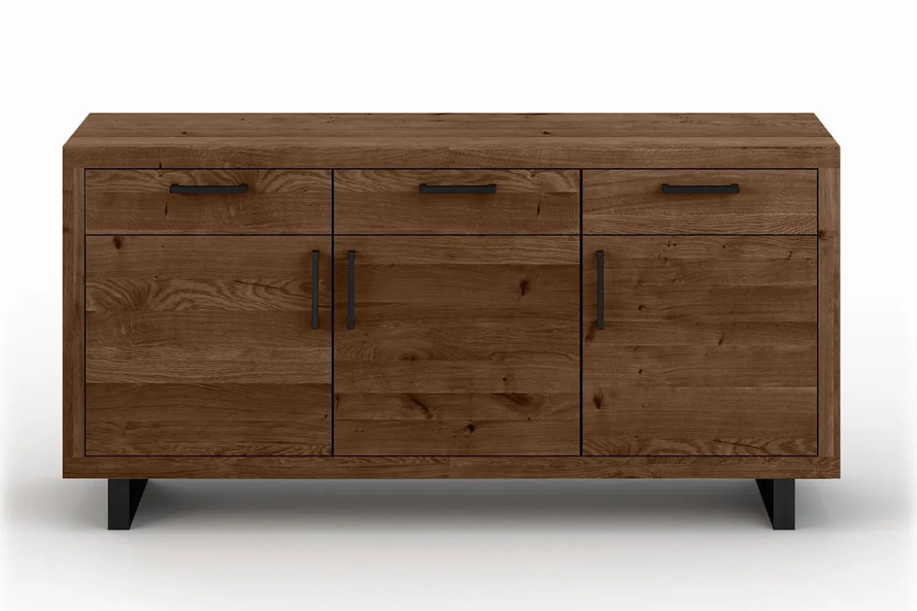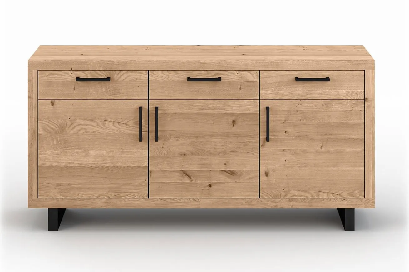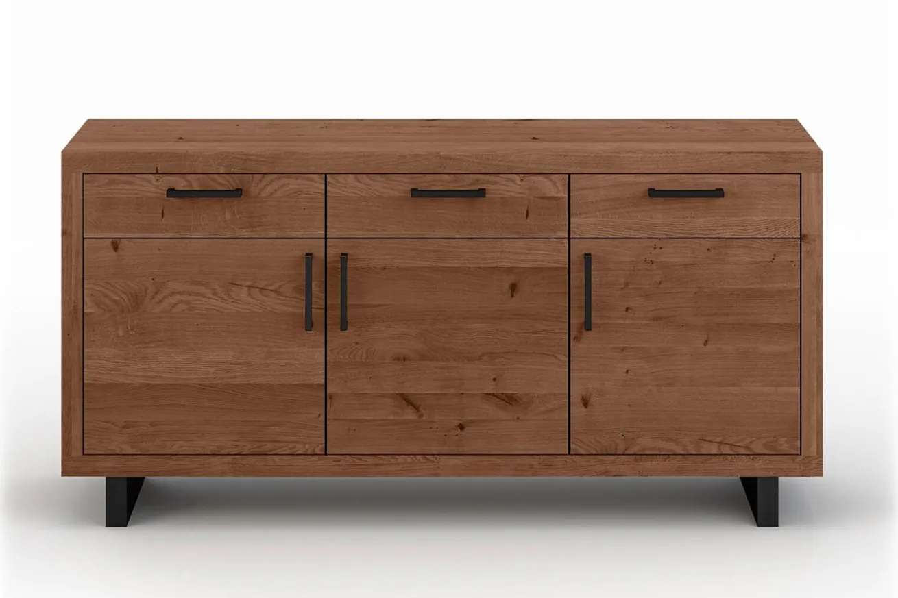 Anrichte, 100% Massivholz, rustikales Eichenholz, 3-türig, 3 Schubladen