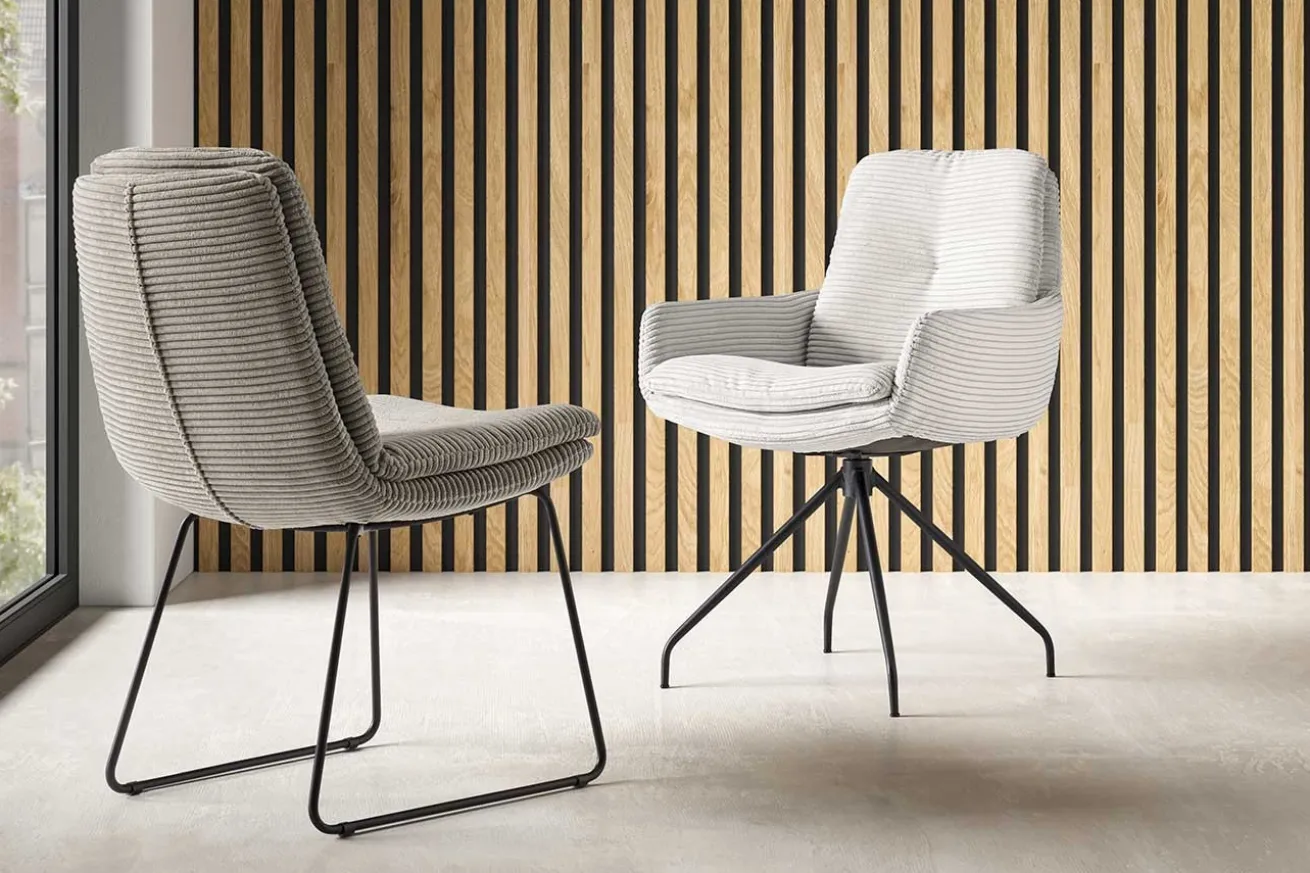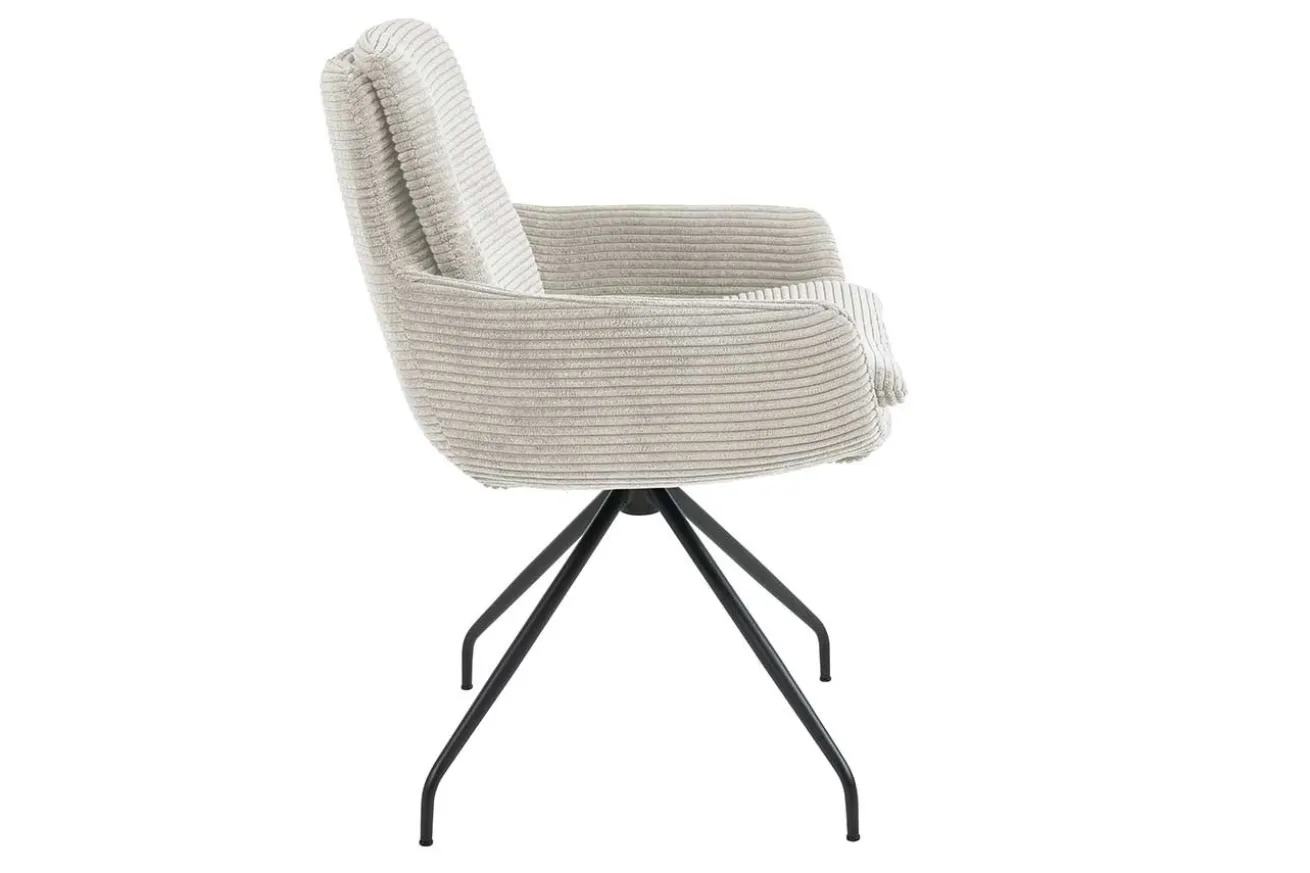 Um in Ruhe sein Essen genießen zu können, bedarf es an gemütlichen Sitzmöglichkeiten, von denen man sich nicht trennen möchte! Bilbao, der Armlehnstuhl mit einem weichen Cordbezug, lässt Ihre Träume bezüglich Aussehen und Komfort wahr werden. So lässt sich das Essen gerne mal in die Länge ziehen. Aber warum auch nicht? Immerhin ist Bilbao so gepolstert, dass stundenlanges Sitzen möglich ist. Und das Tolle: dank des schwarz matten Metallgestells lässt sich der Korpus drehen. So einen Küchenstuhl hat kaum jemand bei sich zuhause!