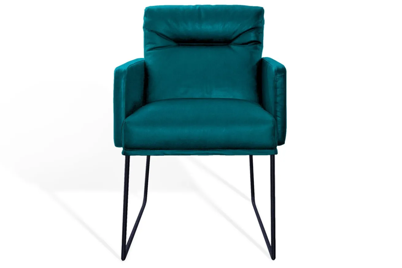 Ob im Wohnzimmer, im Arbeitszimmer oder in der Leseecke, dieser Armlehnstuhl fügt sich harmonisch in unterschiedlichste Einrichtungsstile ein. Die Kombination aus dem tiefen Petrol und den eleganten schwarzen Kufenschuhen schafft eine harmonische Balance, die jedem Raum eine besondere Note verleiht.