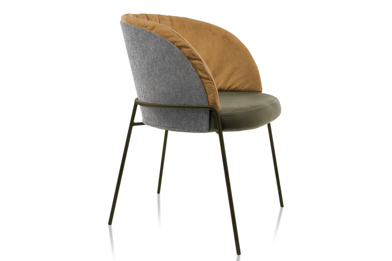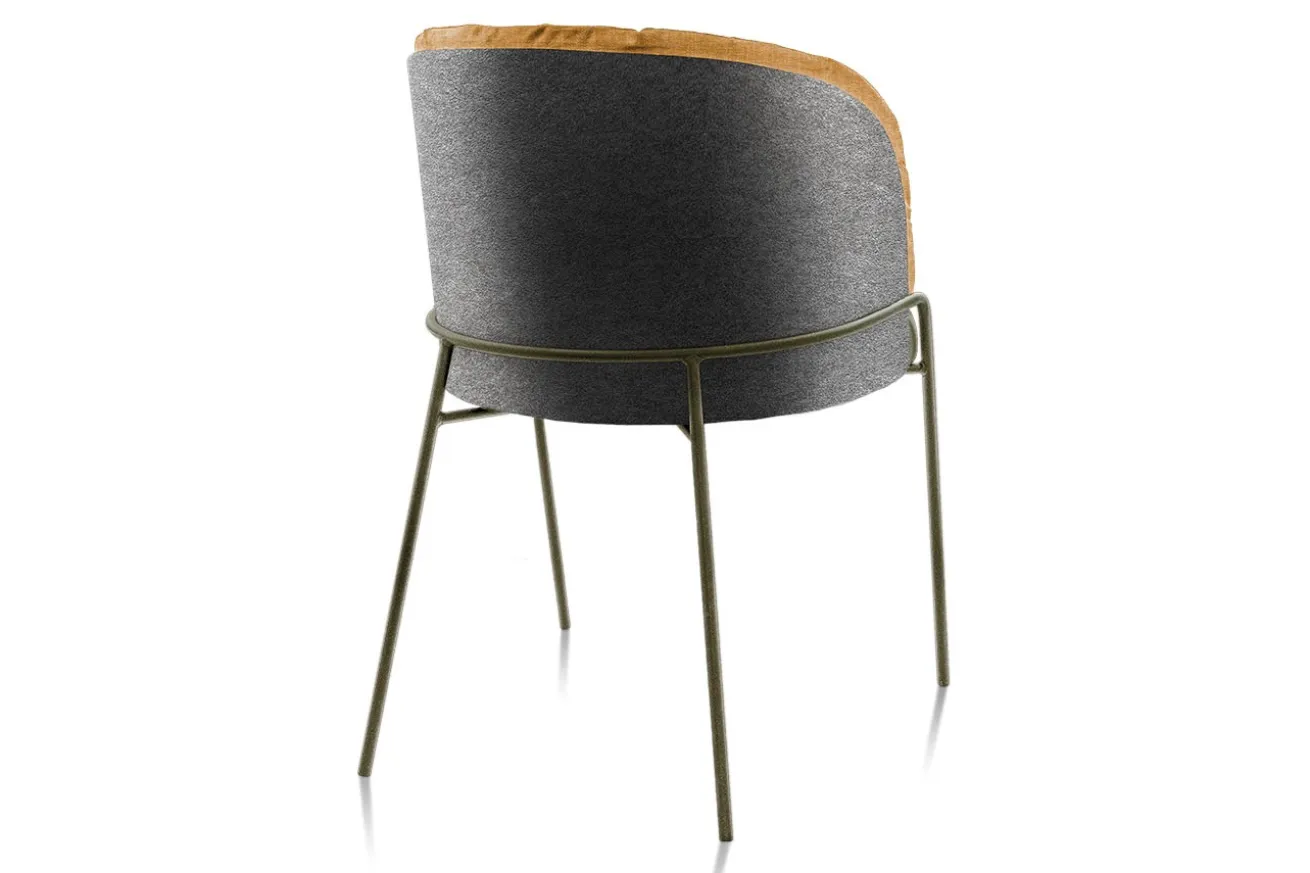 Das 4-füßige Metallgestell in strukturiertem Olivefarben garantiert nicht nur die nötige Stabilität, sondern unterstreicht zudem die stilvolle Ausstrahlung des Stuhls. Dieses geschmackvolle Design macht ihn zur idealen Wahl für verschiedene Einrichtungsstile – ob in einem modernen Loft, einem gemütlichen Wohnzimmer oder einem eleganten Büro.
