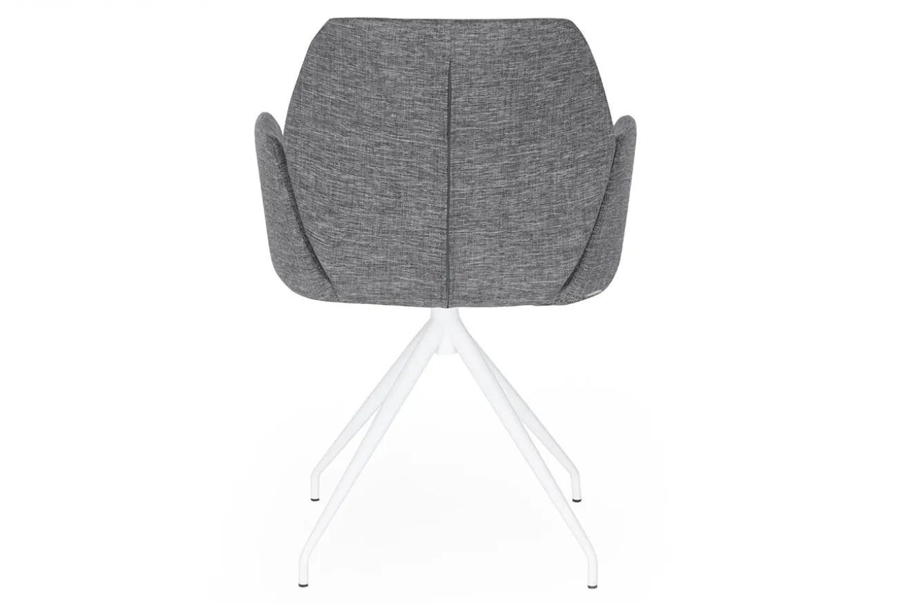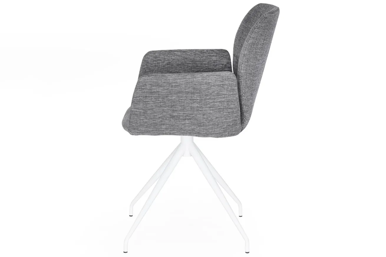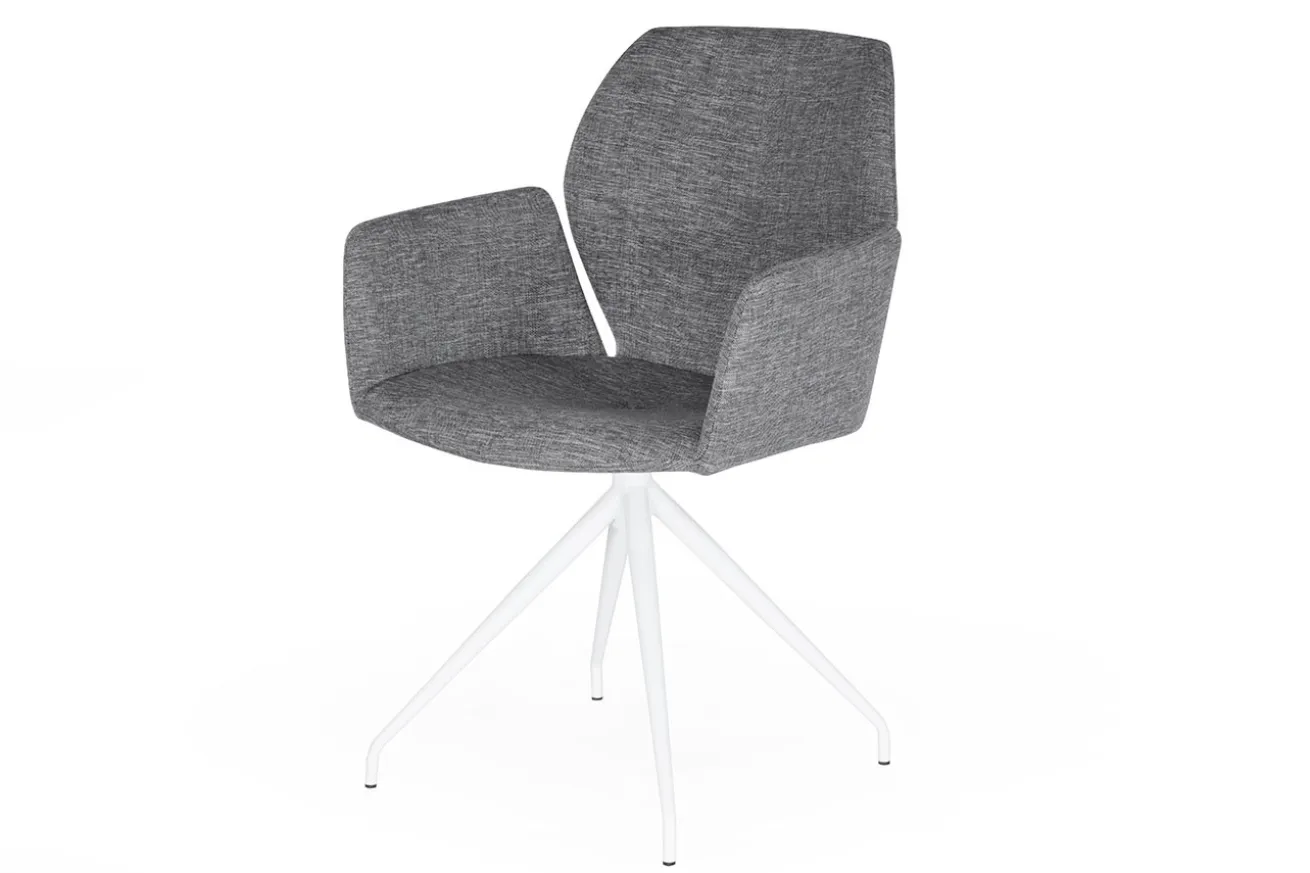 Dieser Armlehnstuhl sieht doch außergewöhnlich aus, oder? Er hat eine Breite von 60cm, eine Höhe von 87cm und eine Tiefe von 58cm. Der Korpus wurde mit einem grauen Polster bezogen. Getragen wird er von einem dazu passenden weiß lackierten Gestell mit vier Füßen. So sieht der Stuhl schlicht und elegant zugleich aus. Dadurch eignet sich der Armlehnstuhl nicht nur für private Zwecke, sondern auch für die Gastronomie.