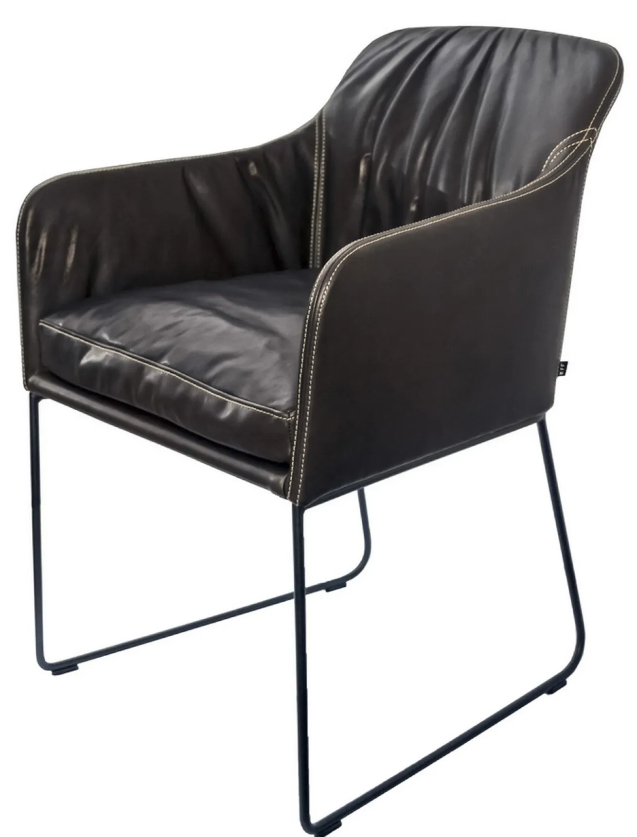 Sie suchen einen zu Ihrer Inneneinrichtung passenden Armlehnstuhl? Bei lagerhaus.de werden Sie fündig! Das schlichte Design unseres Esstischstuhls bringt Gleichgewicht ins Haus. Durch die tiefe Sitzfläche und das lose Kissen eignet sich das Möbelstück ideal für Menschen mit langen Beinen und bietet eine stabile Rückenstütze, damit Sie auch nach dem Essen noch gemütlich am Tisch sitzen bleiben können. Das Produkt hat die Maße Breite 57cm, Höhe 83cm sowie Tiefe 61cm. Der Korpus zum Sitzen besteht aus schwarzem Leder, einem natürlichen Rohstoff, der hauptsächlich für Kleidung und Möbel verwendet wird. Ein besonderes Detail ist die helle Naht. Gehalten wird der Korpus von einem zweiteiligen Drahtkufengestell.