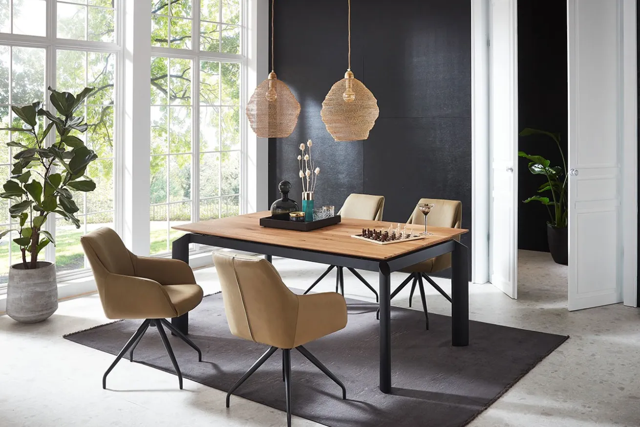 Was diesen Esstisch wirklich besonders macht, ist seine Funktionalität. Die ausziehbare Funktion ermöglicht es Ihnen, den Tisch mühelos an Ihre Bedürfnisse anzupassen. Sei es ein gemütliches Dinner zu zweit oder eine festliche Tafel für Freunde und Familie – dieser Tisch bietet genug Platz für alle.