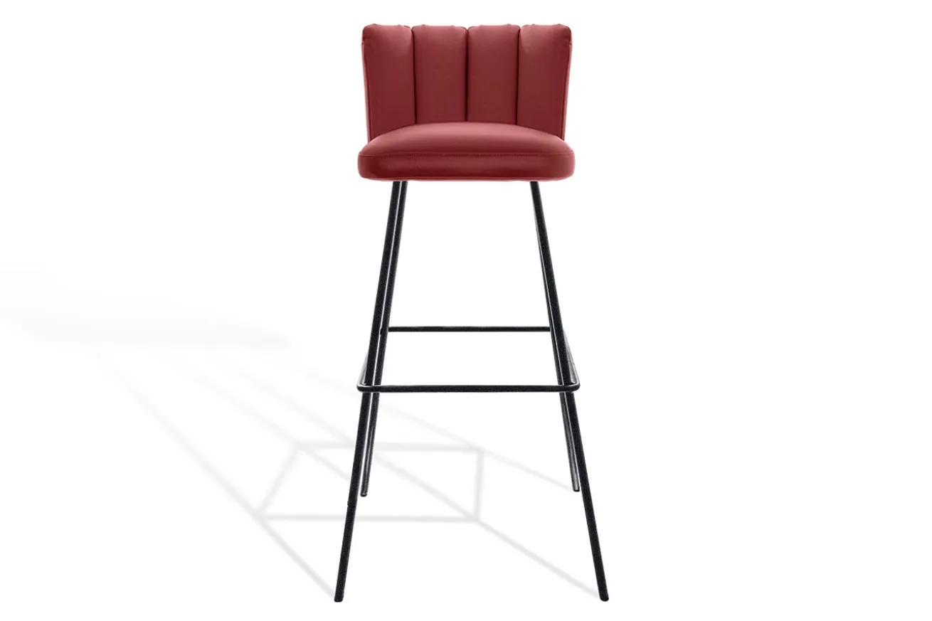 Dieser Thekenstuhl bringt Eleganz und Komfort in jedes Raumkonzept. Mit seinem weichen, gepolsterten Sitz und Rückenlehne, die in einem luxuriösen roten Lederbezug eingefasst sind, bietet er ein stilvolles Sitzgefühl auf gehobenem Niveau. Die kräftige rote Farbe setzt dabei einen ausdrucksstarken Akzent, der jede Theken- oder Barumgebung optisch aufwertet.