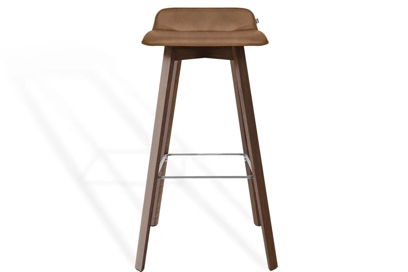 Dank der vier stabilen Beine aus massivem Nussholz steht der Hocker sicher, während die metallenen Fußstützen für zusätzlichen Komfort sorgen. Ob in der Küche, an der Hausbar oder in einem trendigen Café – dieser Barhocker überzeugt sowohl optisch als auch funktional auf ganzer Linie.