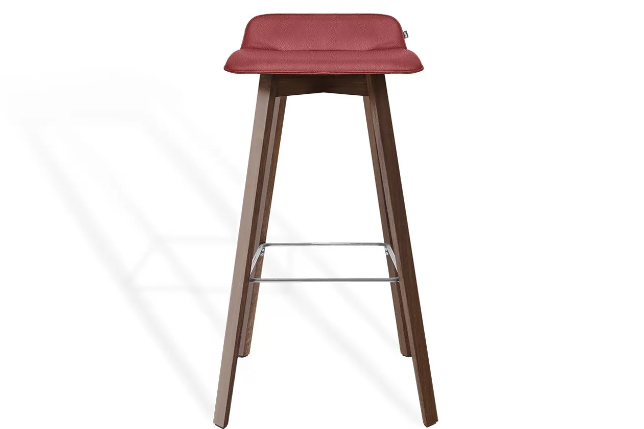 Dank der vier stabilen Beine aus massivem Nussholz steht der Hocker sicher, während die metallenen Fußstützen für zusätzlichen Komfort sorgen. Ob in der Küche, an der Hausbar oder in einem trendigen Café – dieser Barhocker überzeugt sowohl optisch als auch funktional auf ganzer Linie.