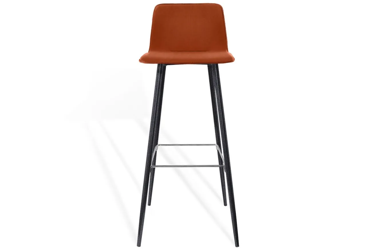 Dieser Barhocker vereint zeitlose Eleganz mit modernen Akzenten. Der Sitz, gepolstert und mit hochwertigem orangenem Stoff bezogen, bietet ein gemütliches und einladendes Sitzerlebnis. Die vier schlanken Metallfüße in stilvollem Schwarz verleihen dem Hocker eine minimalistische, aber dennoch robuste Optik. Als besonderes Detail setzen die naturfarbenen Metallstangen, die als Fußablage dienen, einen harmonischen Kontrast und sorgen gleichzeitig für zusätzlichen Komfort. Ideal für die Küche, die Hausbar oder das Esszimmer – dieser Barhocker verbindet urbanes Design mit natürlicher Raffinesse und ist die perfekte Ergänzung für jede stilbewusste Einrichtung.