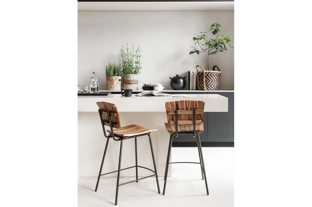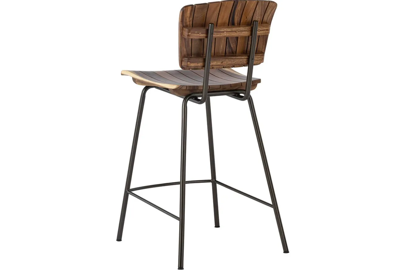 Willkommen in der Welt der Eleganz und des Komforts mit unserem exquisiten Barstuhl aus naturfarbenem Suarholz. Dieser einzigartige Stuhl vereint die natürliche Schönheit von Suarholz mit einer geschmackvoll lackierten Oberfläche und einem robusten schwarzen Metallgestell, das mit einer praktischen Fußablage ausgestattet ist.