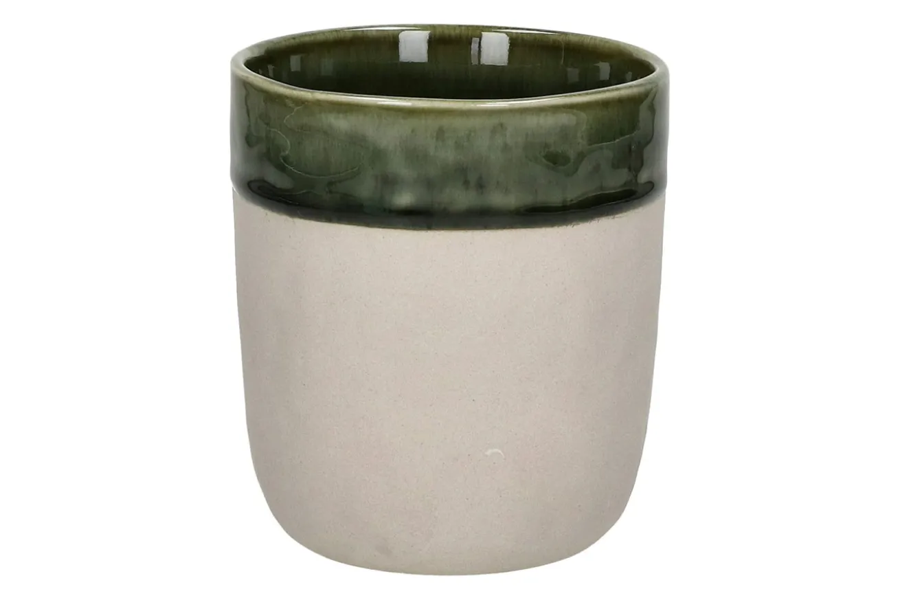 Die glasierte Oberfläche verleiht diesem Kaffeebecher nicht nur eine angenehme Haptik, sondern auch einen eleganten Glanz, der den Morgenkaffee oder den Nachmittags-Tee zu einem stilvollen Ritual macht. Das harmonische Grün-Weiß-Finish bringt eine natürliche Note in Ihre Kaffeeroutine und sorgt für ein visuelles Highlight in Ihrer Küche.