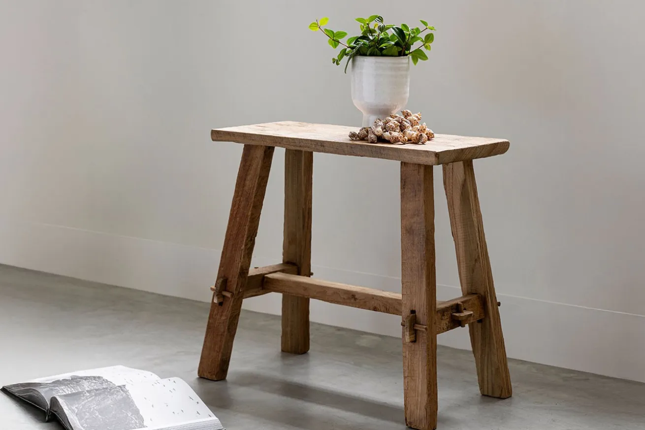Hocker, Teakholz, recyclet, rustikale Oberfläche