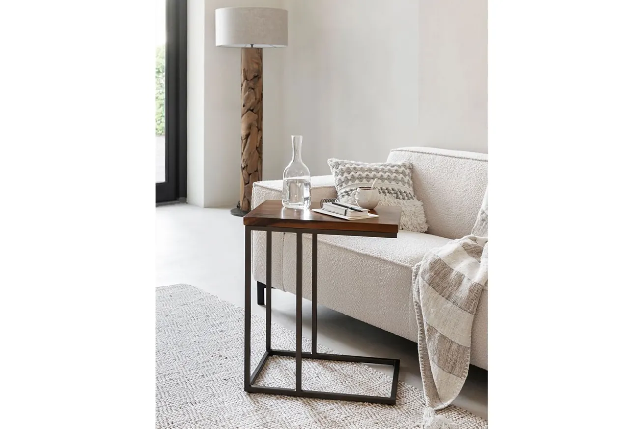 Erleben Sie die perfekte Symbiose aus Natur und modernem Design mit unserem außergewöhnlichen Beistelltisch aus naturfarbenem Suarholz. Dieser Tisch verkörpert die Schönheit des Suarholzes in Verbindung mit einer elegant lackierten Oberfläche und einem robusten schwarzen Metallgestell.