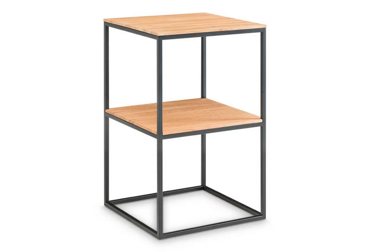 Das im Hausbau sehr begehrte Holz wurde hier als quadratische Platte verwendet und mit einem mattschwarzen Metallgestell verbunden, um dieses moderne Tischchen zu erhalten. Mit den Maßen Breite & Tiefe = 45cm ist er nicht nur klein, hübsch, sondern auch praktisch. Die geölte Oberfläche bietet Platz für jegliche Dekorationswünsche, sei es im Flur für das Telefon, im Wohnzimmer für mehrere Vasen oder Pflanzen oder aber im Schlafzimmer als Nachttisch, Ihren Ideen und Verwendungszwecken sind da keine Grenzen gesetzt.