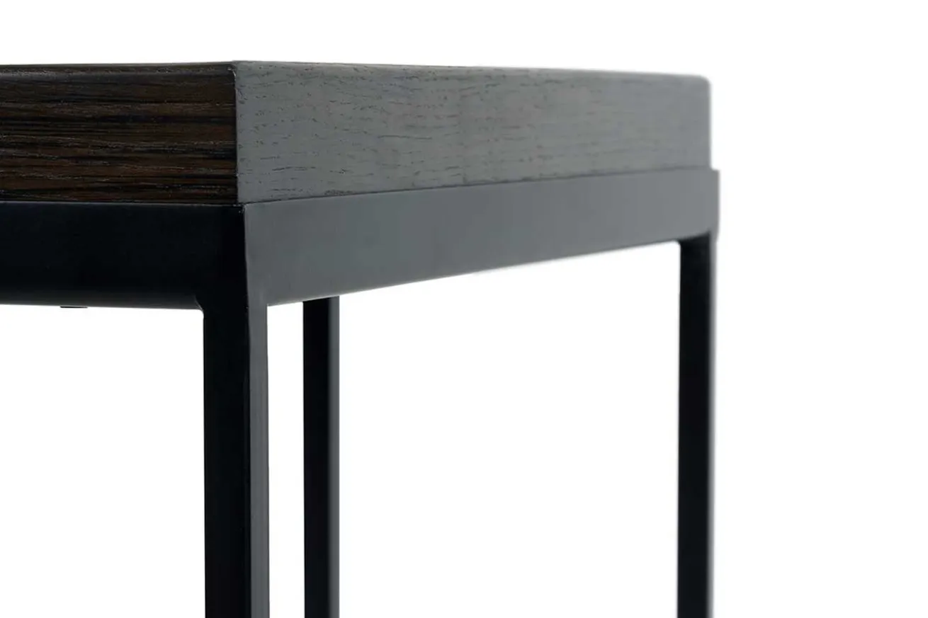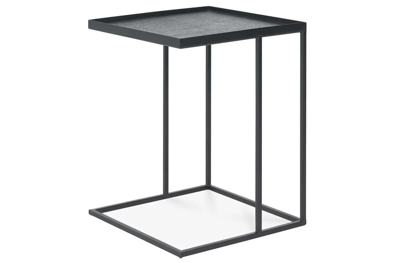 Dieser Beisteller wurde im Industrial-Stil gefertigt, für den er stellvertretend mit seiner schwarz gefärbten Platte aus Holz sowie dem schwarzen Metallgestell steht. Das kleine Möbelstück passt aber auch genauso gut in moderne Milieus oder Räumlichkeiten im Skandistil. Vor allem neben Sofas in neutralen Farben macht der Beistelltisch eine super Figur, denn dadurch, dass er ein Gestell im Freischwinger-Stil hat, lässt sich der Tisch noch näher zu Ihnen ziehen.