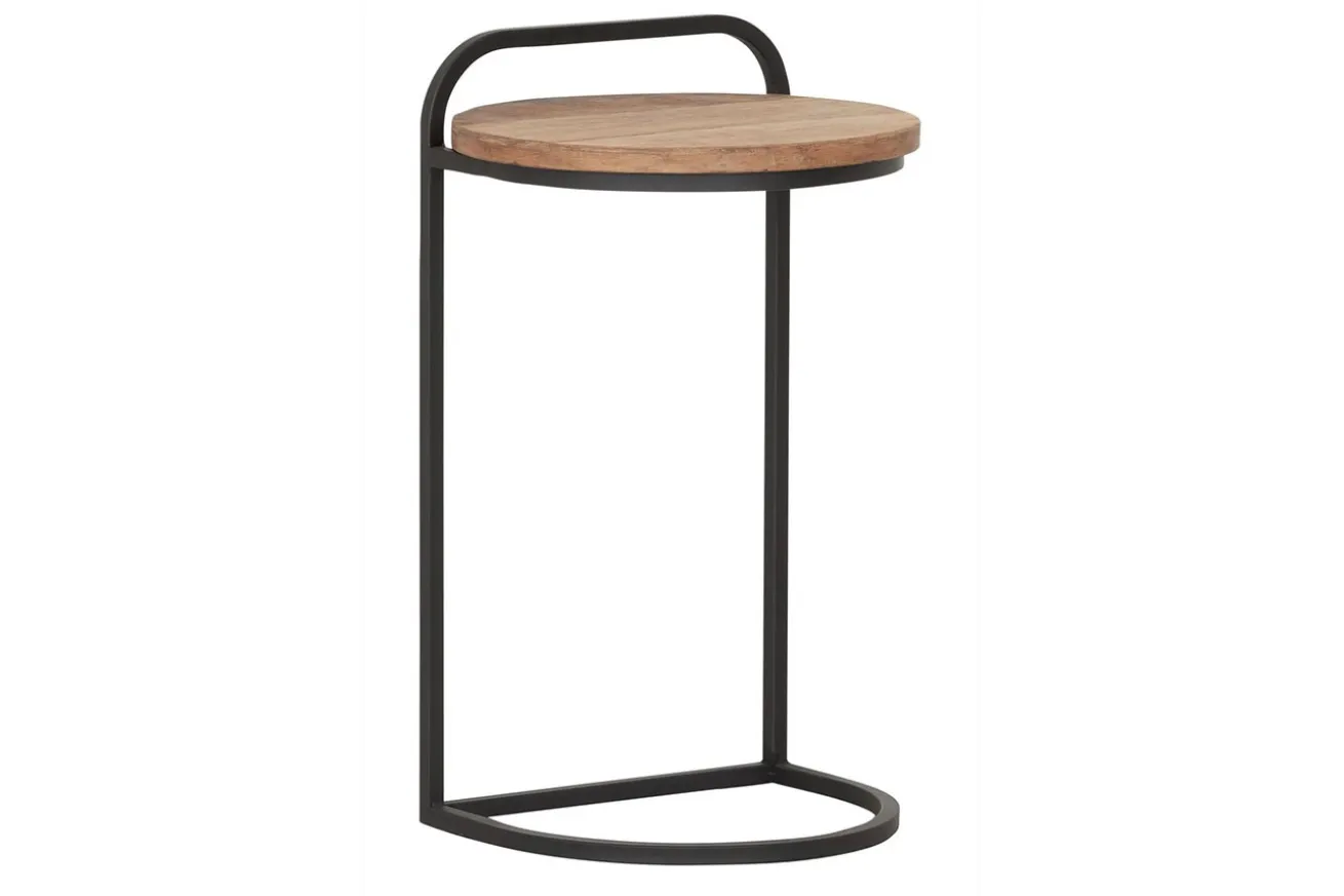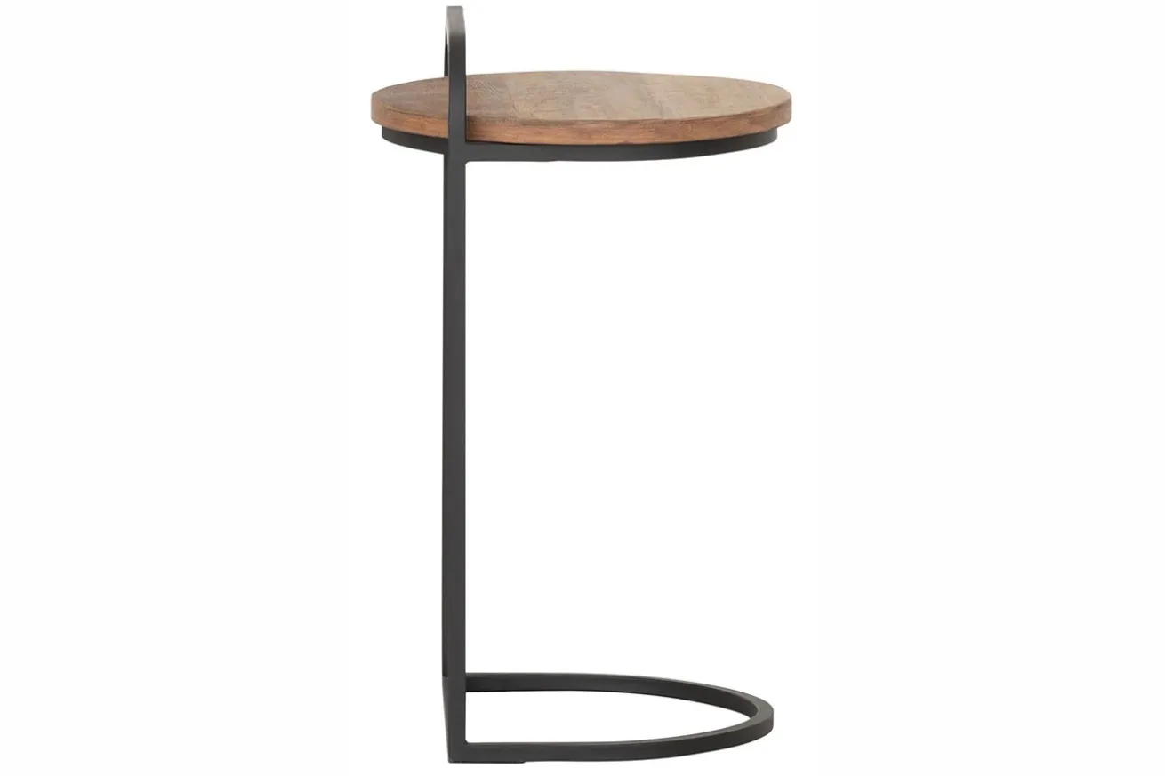 Bringen Sie mit unserem runden Beistelltisch im Industrial Style aus schwarzem Metall und recyceltem Teakholz zeitlose Eleganz und modernes Design in Ihr Zuhause und schaffen Sie eine gemütliche Atmosphäre, die zum Verweilen und Entspannen einlädt. Dieses vielseitige Möbelstück verleiht jedem Raum einen Hauch von Eleganz und Funktionalität.