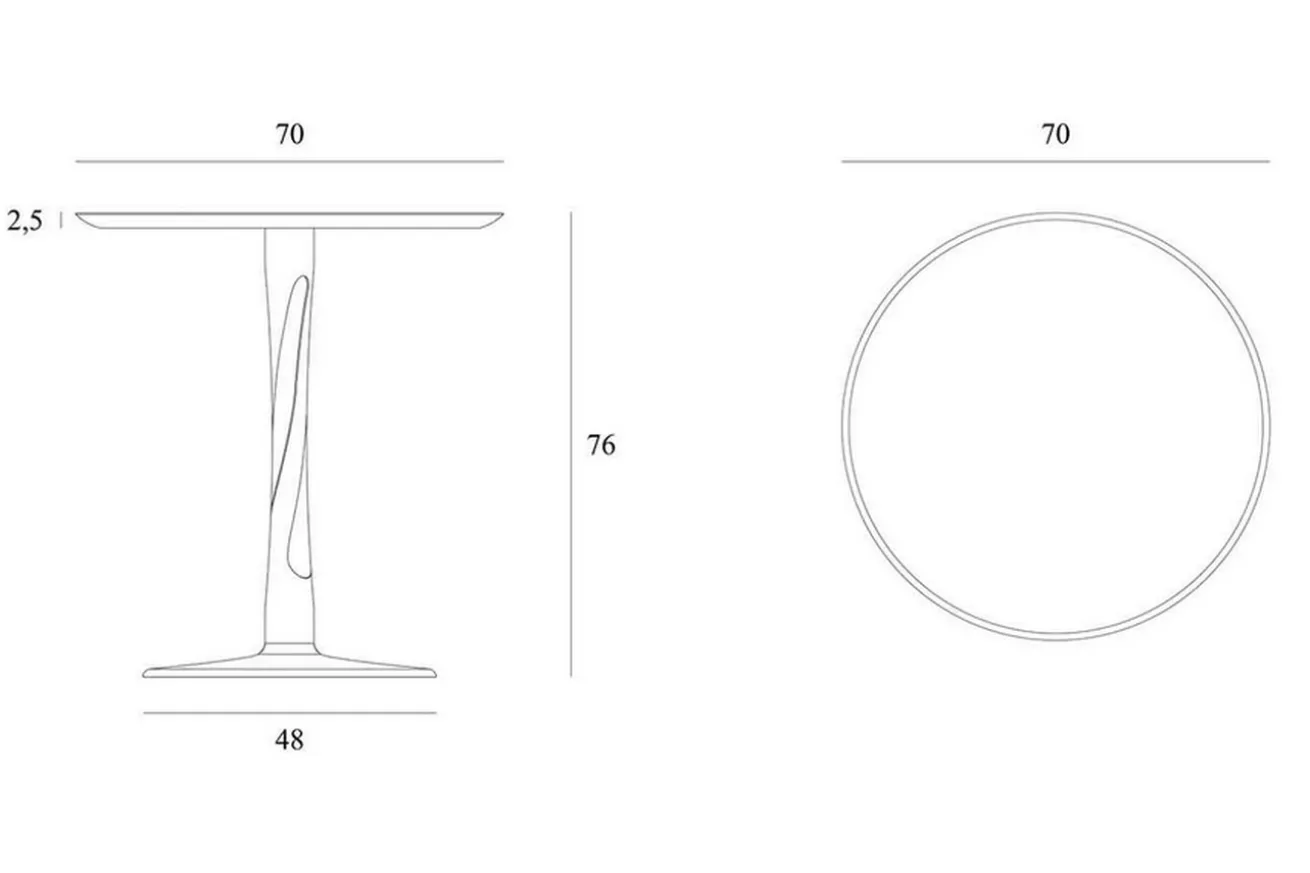 Der Torsion Esstisch ist luftig mit subtilen Komplexitäten und beinhaltet fortschrittliche Holzbearbeitungstechniken, um eine leichte Tischplatte mit einer Basis von skulpturaler Eleganz zu schaffen. Das Massivholzmöbel besteht komplett aus Holz. Die Naturfarbe der Eiche wurde durch eine schwarze Lackierung ersetzt. Der Tisch hat einen Durchmesser von 70cm sowie eine Höhe von 76cm. Dadurch passt das Möbelstück nicht nur in Esszimmer, sondern auch in geräumige Küchen.