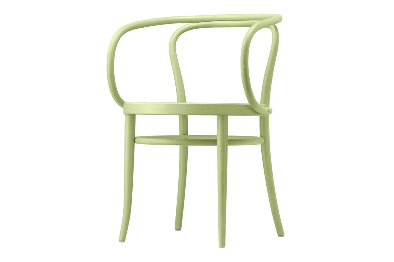 Dieser elegante Bugholz-Klassiker ist ein Meisterwerk in Konstruktion und Fertigung: Der ausladende Bügel, der Rücken- und Armlehne zugleich bildet, wird in einem Stück aus massivem Buchenholz in seine Form gebogen. Wie das Urmodell der Bugholzstühle, Modell Nr. 214, besteht der 209 ebenfalls nur aus sechs Teilen. Durch seine ästhetische Reduktion in Verbindung mit der organischen Form wirkt er fast wie eine Skulptur. Der Schweizer Architekt Le Corbusier war davon begeistert und setzte ihn in vielen seiner Gebäude ein, u.a. 1927 in der Weißenhof-Siedlung in Stuttgart. Er bestätigte, dass dieser Stuhl „Adel besitzt“.
