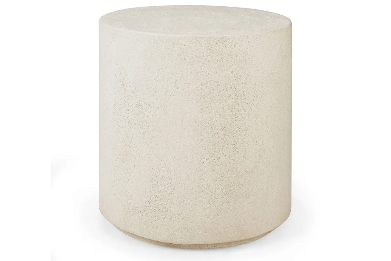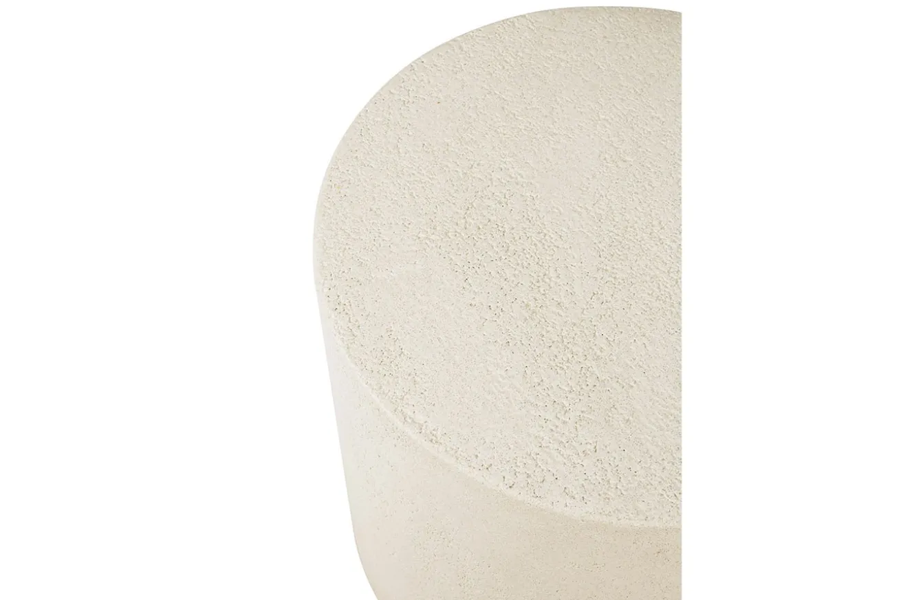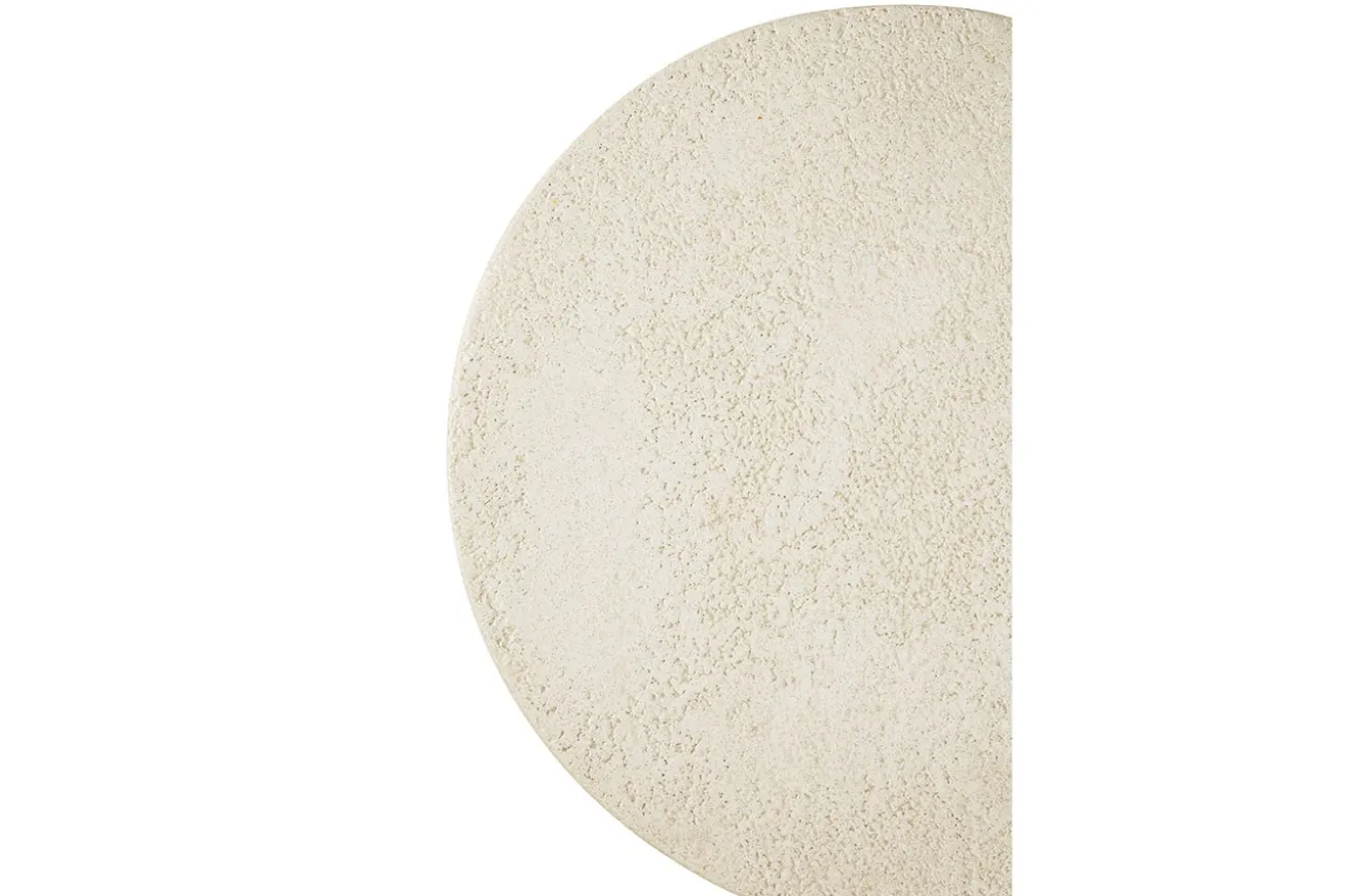 Der runde Tisch in Naturfarbe besticht durch seine schlichte, dennoch ansprechende Optik. Der Mikrozement, aus dem er gefertigt ist, verleiht ihm nicht nur eine natürliche Anmutung, sondern auch eine bemerkenswerte Langlebigkeit.