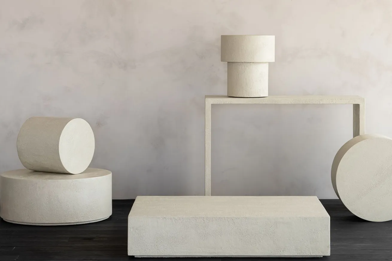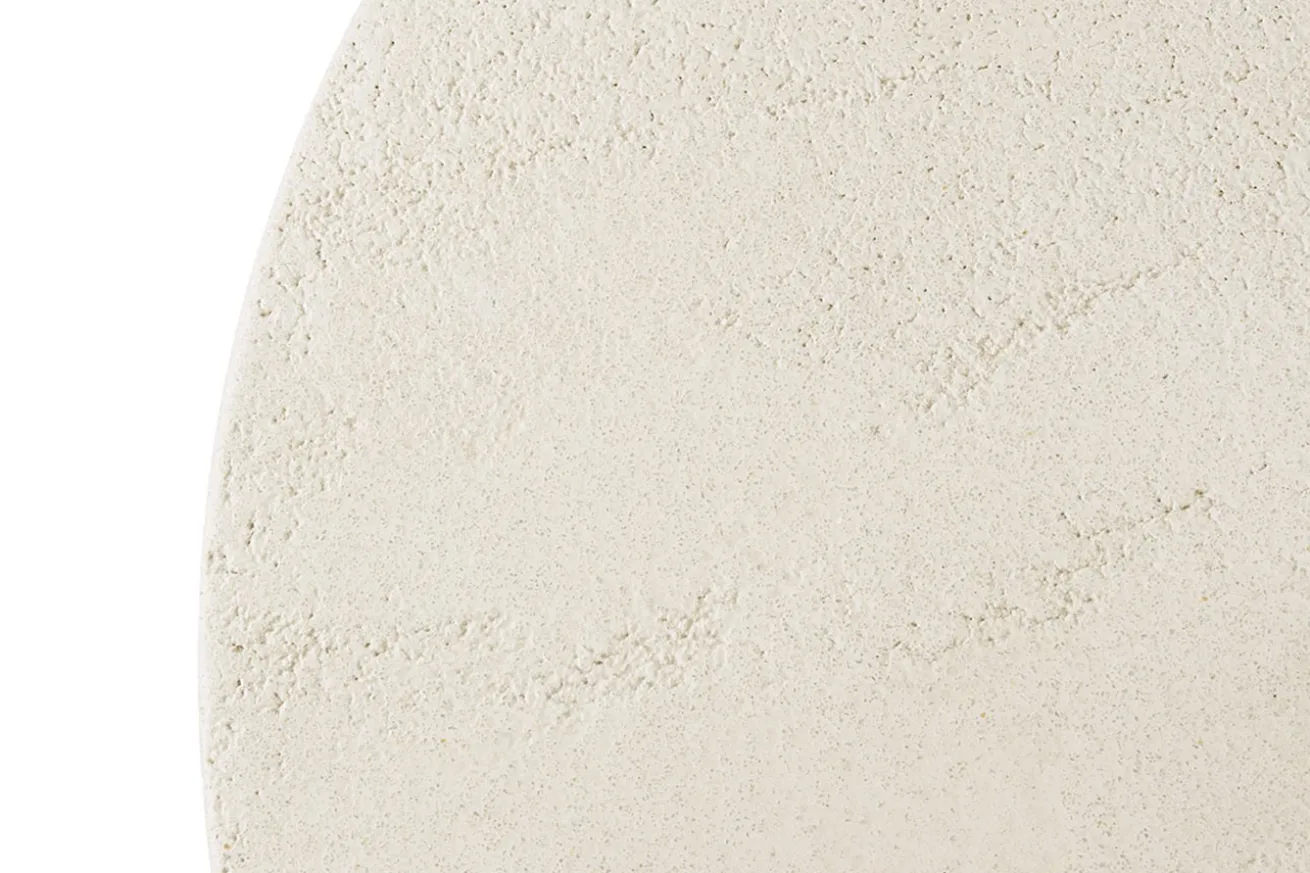 Der runde Tisch in Naturfarbe besticht durch seine schlichte, dennoch ansprechende Optik. Der Mikrozement, aus dem er gefertigt ist, verleiht ihm nicht nur eine natürliche Anmutung, sondern auch eine bemerkenswerte Langlebigkeit.