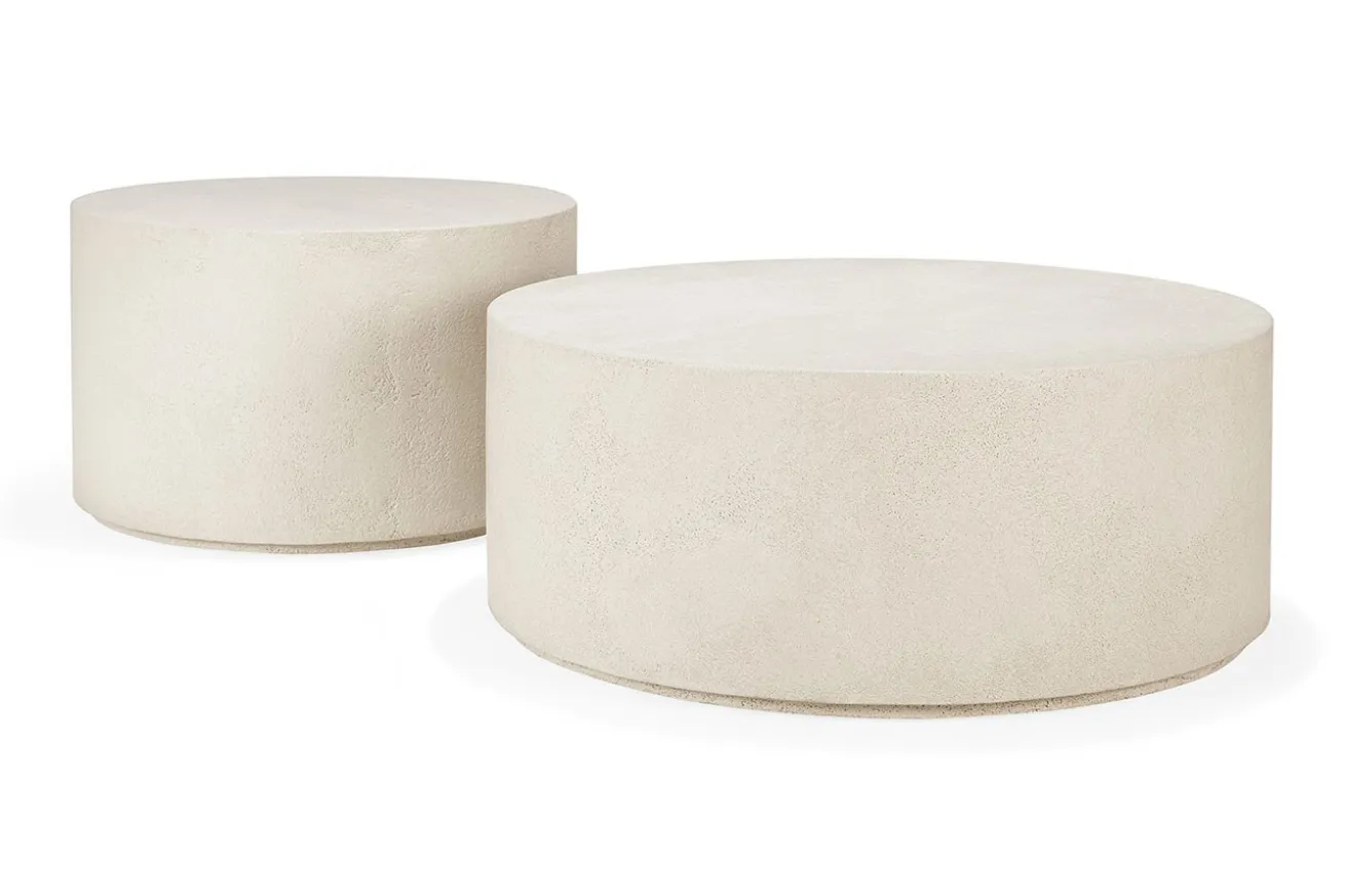 Verleihen Sie Ihrem Wohnzimmer eine natürliche Eleganz mit unserem runden Couchtisch aus Mikrozement in Naturfarbe. Dieses Möbelstück verbindet organische Schönheit mit modernem Design auf harmonische Weise.
