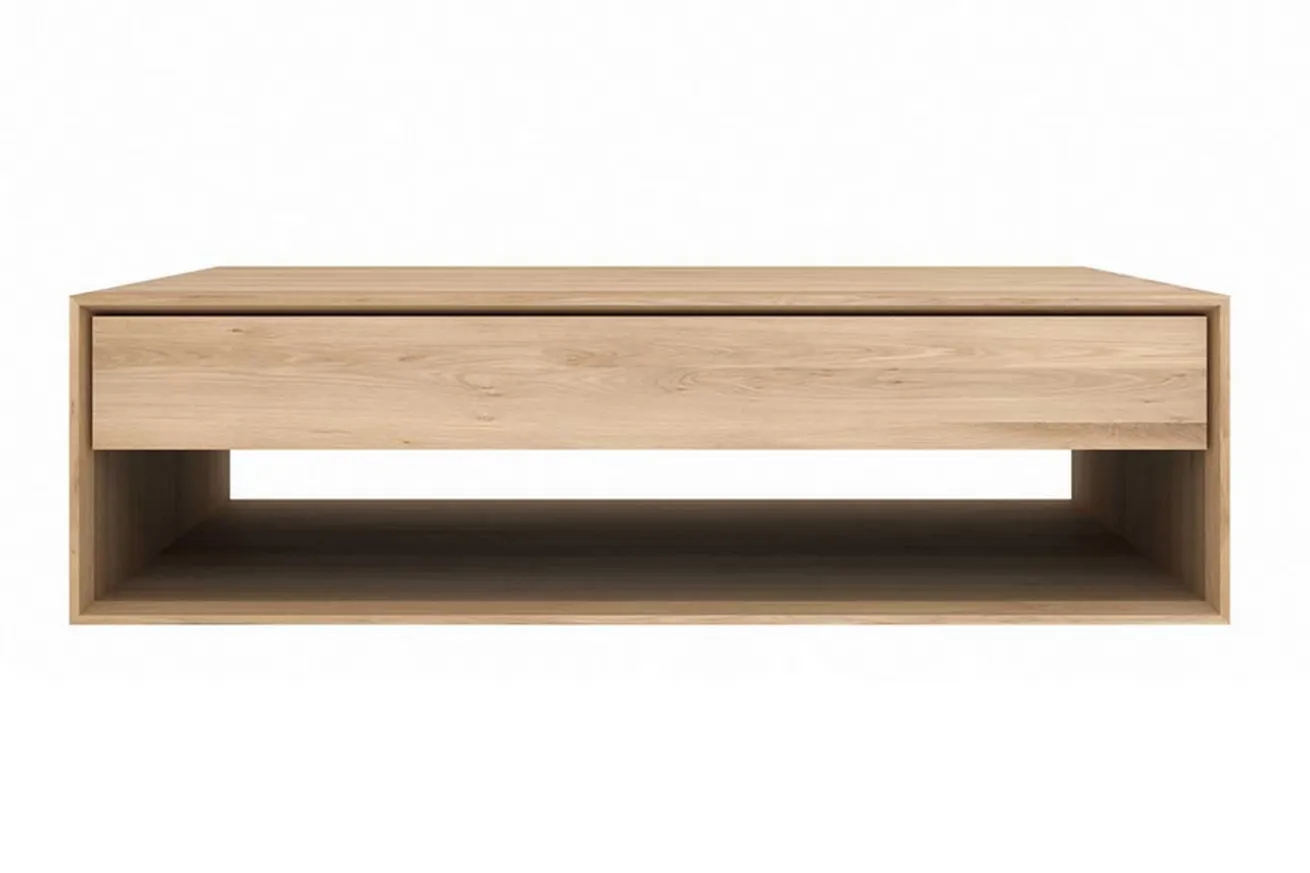 Stilvoll angefertigt bildet der Couchtisch einen eleganten Kontrast zum eingerichteten Wohnraum. Er besteht aus dem Holz der Eiche und kommt in seiner natürlichen Farbe mit einer gleichmäßigen Maserung daher. Der Holztisch hat die Maße Breite 120cm, Höhe 35cm und Tiefe 70cm. Die Oberfläche wurde lackiert. Der Couchtisch aus dem im Möbelbau sehr beliebten Eichenholz hat nicht nur zwei Böden zum Abstellen und Hinlegen, sondern auch eine Schublade ohne Griff. Das rechteckige Produkt ist stilvoll und modern zugleich. Mit den passenden Möbeln wie einer gemütlichen Stoffcouch beispielsweise wird das moderne Milieu erweitert.