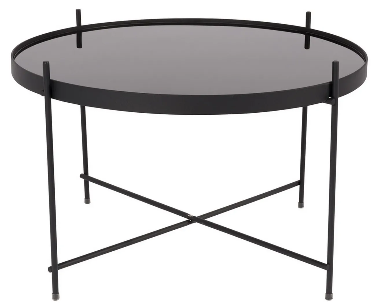 Dieser Couchtisch hat ein schwarzes Metallgestell. Die Ablagefläche aus Glas hat die gleiche Farbe. Durch die einheitliche Farbe und die glänzende Oberfläche wird diesem Beistelltisch ein moderner und edler Look verliehen. Eben dieser moderne und edle Look verleiht diesem Tisch nahezu grenzenlose Freiheit, was den Punkt Kombinationsmöglichkeiten betrifft, egal ob Wohnzimmer oder Flur! Er hat die Maße Höhe 40cm und einen Durchmesser von 62cm. Durch das klappbare Metallgestell lässt sich dieser Beisteller in runder Form auch gut verstauen wenn Sie ihn mal nicht benutzen! Er ist im modernen Stil gefertigt und passt in genau diese Milieus. Er lässt sich super mit anderen Produkten dieser schwarzen Farbe kombinieren.