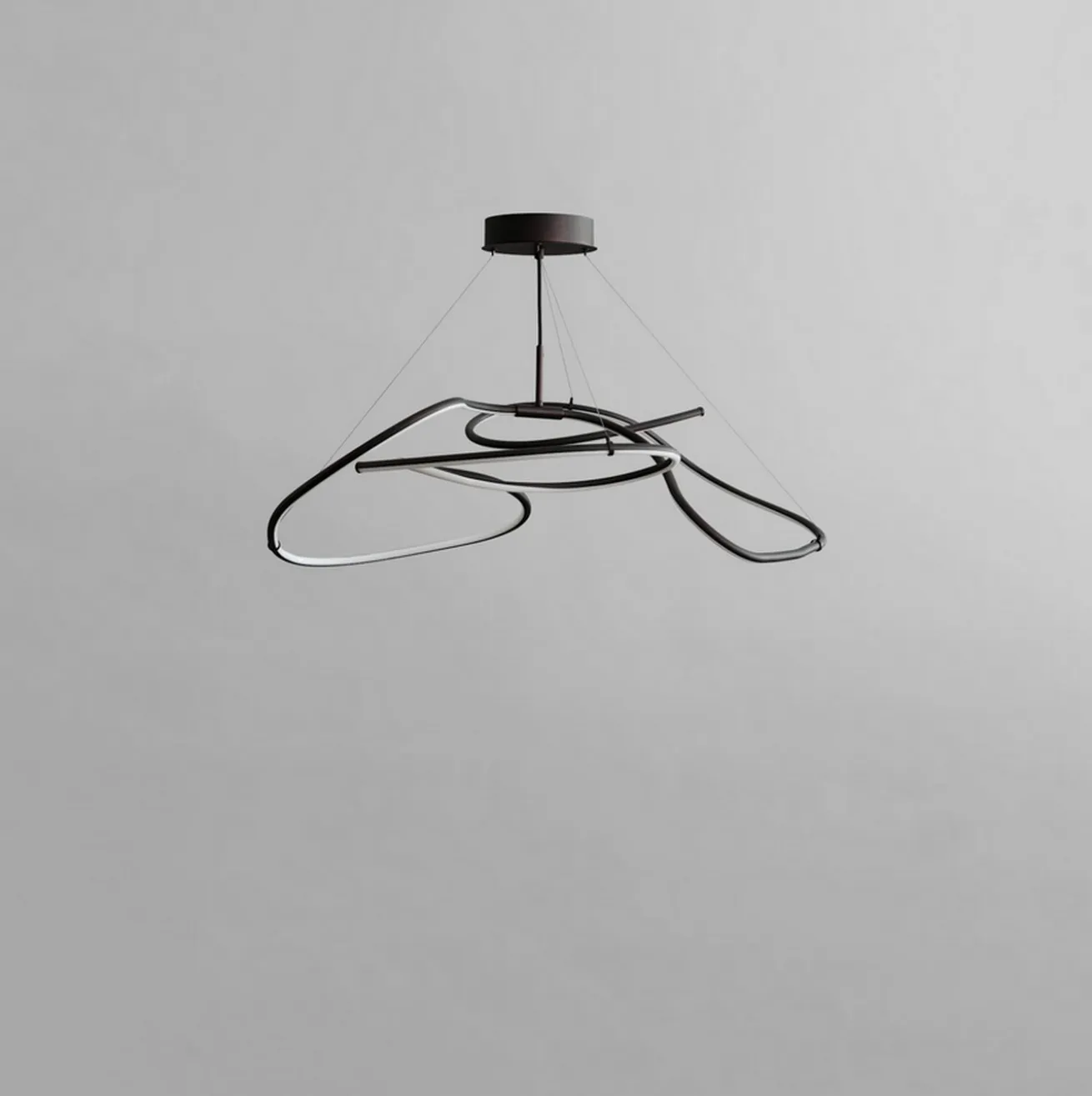 Der Ghost Chandelier Mini von 101 Copenhagen übersetzt reduzierte Kunst in eine grafische Lichtskulptur. Die weich geschwungene Form orientiert sich an einer freien Handzeichnung und erzeugt aus jedem Blickwinkel eine neue, organische Silhouette. Der leuchtende Acrylschlauch bildet das Herzstück des Designs und sorgt für ein warmes, atmosphärisches Licht, das Räume subtil strukturiert und visuell aufwertet.