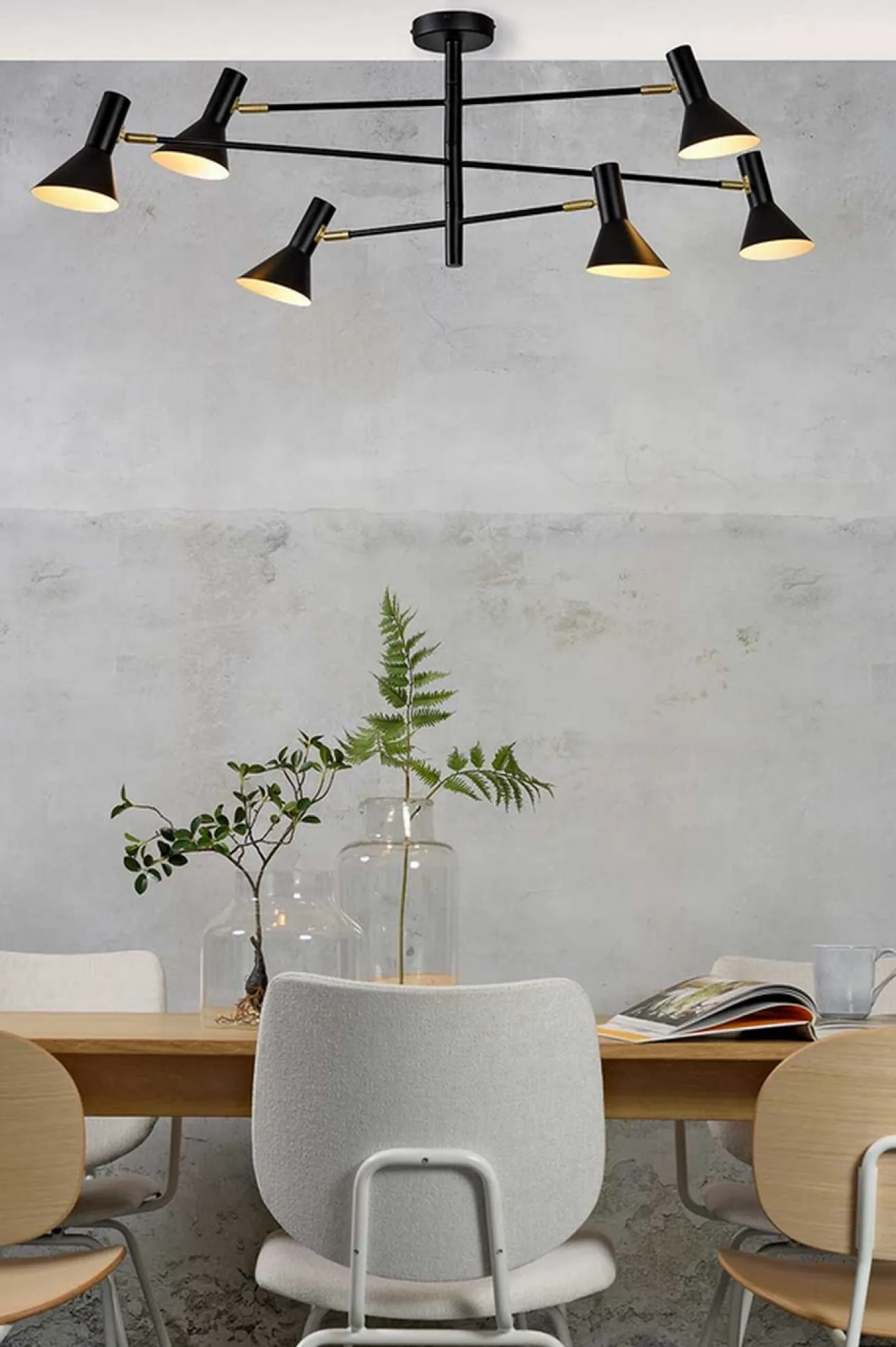 Die Deckenleuchte Izmir ist 3-armig und aus schwarz farbigem Metall mit goldenen Akzenten. Auch die Lampenschirme sind schwarz. Insgesamt passt die Leuchte mit einem Durchmesser von 124cm und einer Höhe von 39cm in ein Esszimmer mit einem eher helleren Massivholztisch. Strahlen tut sie in viele verschiedene Richtungen, sorgt aber immer für das richtige Licht.