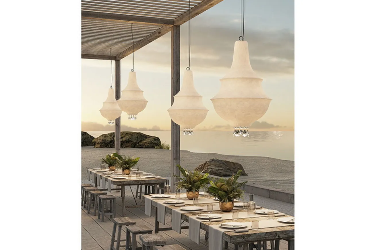 Das herausragende Merkmal der Lady D Leuchte ist ihr inspirierendes Design, das eine königliche Aura verströmt und gleichzeitig eine einladende Atmosphäre schafft. Sie ist sowohl als Pendel- als auch als Stehleuchte erhältlich und eignet sich perfekt für den Innen- und Außenbereich. Der weiße Glasfaserdiffusor, von Matteo Ugolini selbst gestaltet, betont die Silhouette der Lady D-Kollektion auf elegante Weise. Dabei sorgt der Diffusor der Leuchte für eine sanfte und angenehme Lichtverteilung, die den Raum mit einer warmen Atmosphäre erfüllt.