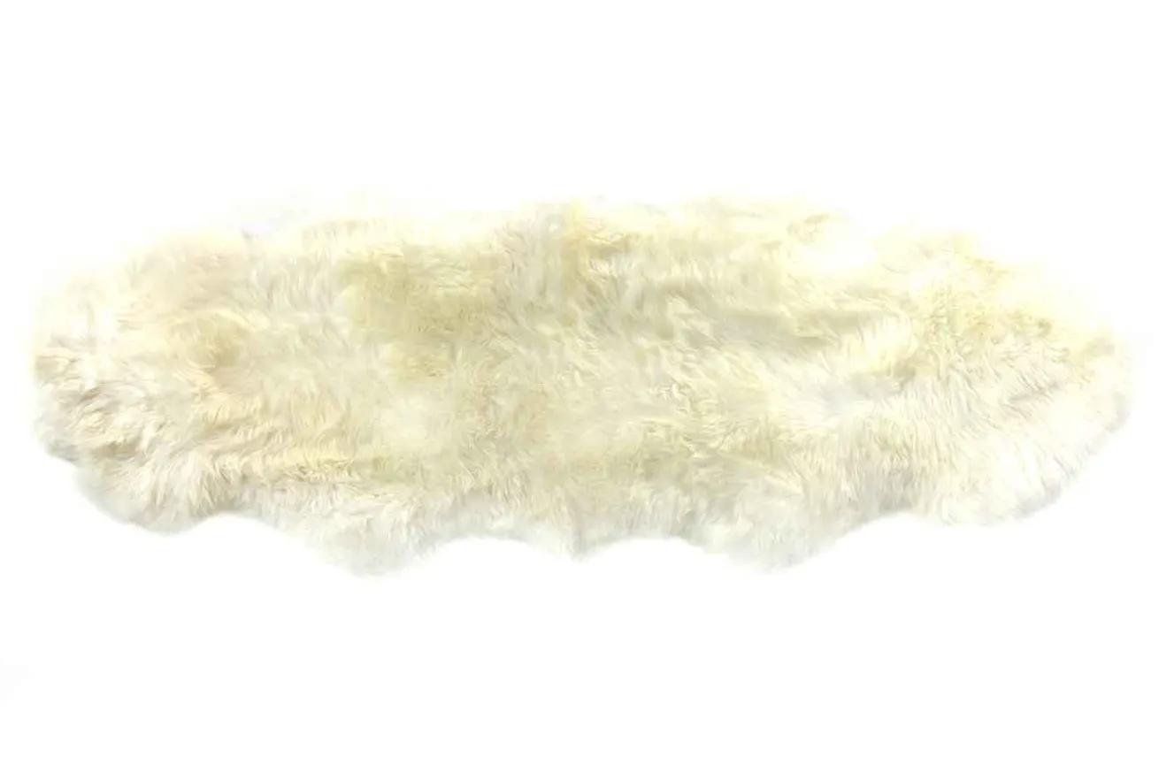 Das weiße Schafsfell hat eine Breite von 180-190cm, eine Tiefe von 60cm sowie eine Höhe von 5cm. Bei diesem außergewöhnlichen Teppich handelt es sich um ein kuscheliges Accessoire für den Boden in modernen Räumen. Der weiße Ton macht das Fell zum Blickfang.