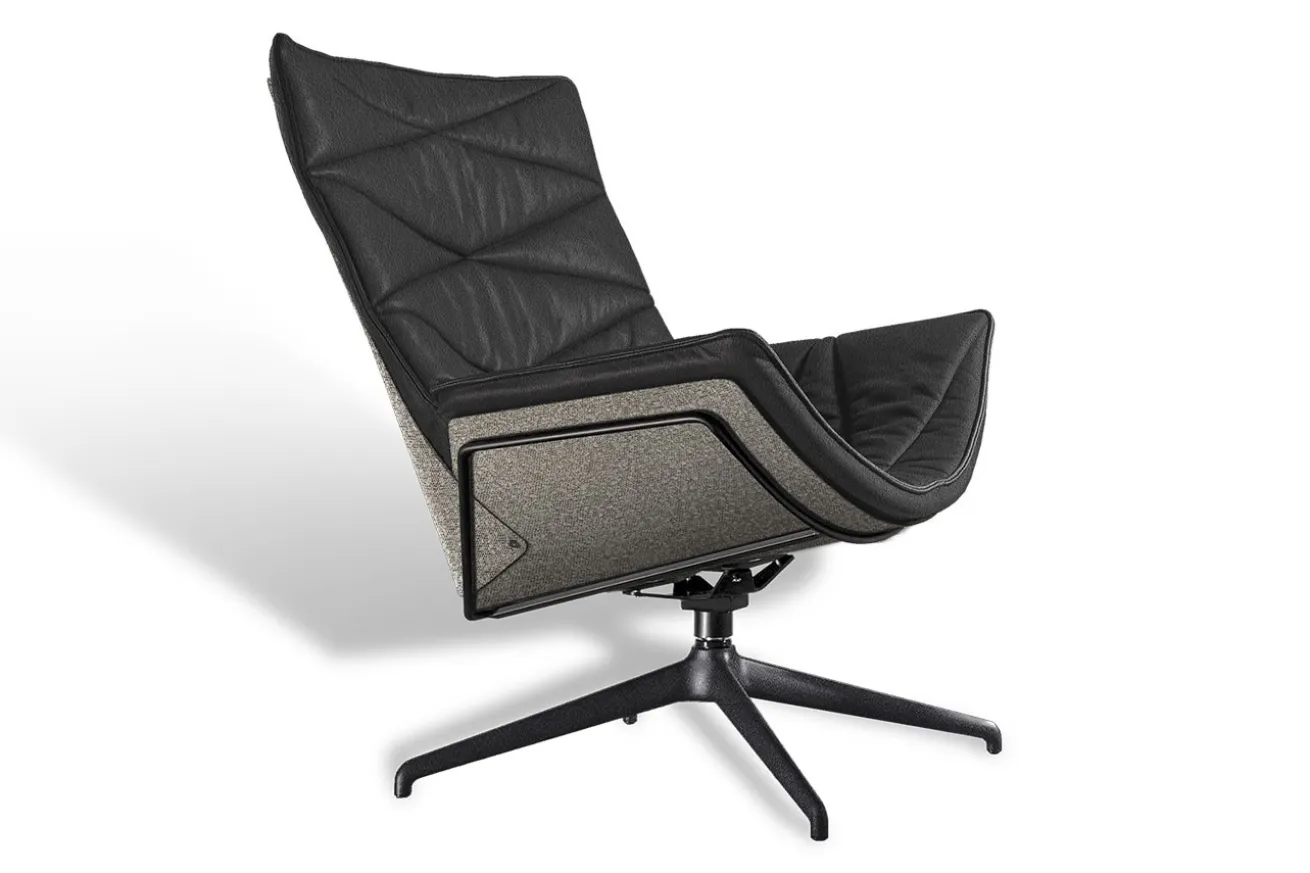 Erleben Sie luxuriösen Komfort mit einem eleganten Twist: Dieser drehbare Sessel vereint modernes Design mit hochwertiger Verarbeitung. Das Kissen, bestehend aus edlem anthrazitfarbenem Leder, bietet sowohl beim Sitzen als auch beim Anlehnen ein unvergleichliches Gefühl von Behaglichkeit. Der Rücken aus grauem Formvlies verleiht dem Sessel nicht nur eine interessante Textur, sondern auch eine subtile, zeitlose Eleganz. Abgerundet wird das Design durch das stabile, drehbare Sterngestell in Schwarz, das für eine sanfte Bewegung sorgt und gleichzeitig einen Hauch von Industrial-Chic in den Raum bringt. Ein Highlight für jede Wohn- oder Bürolandschaft, das Funktionalität und Stil perfekt miteinander kombiniert.