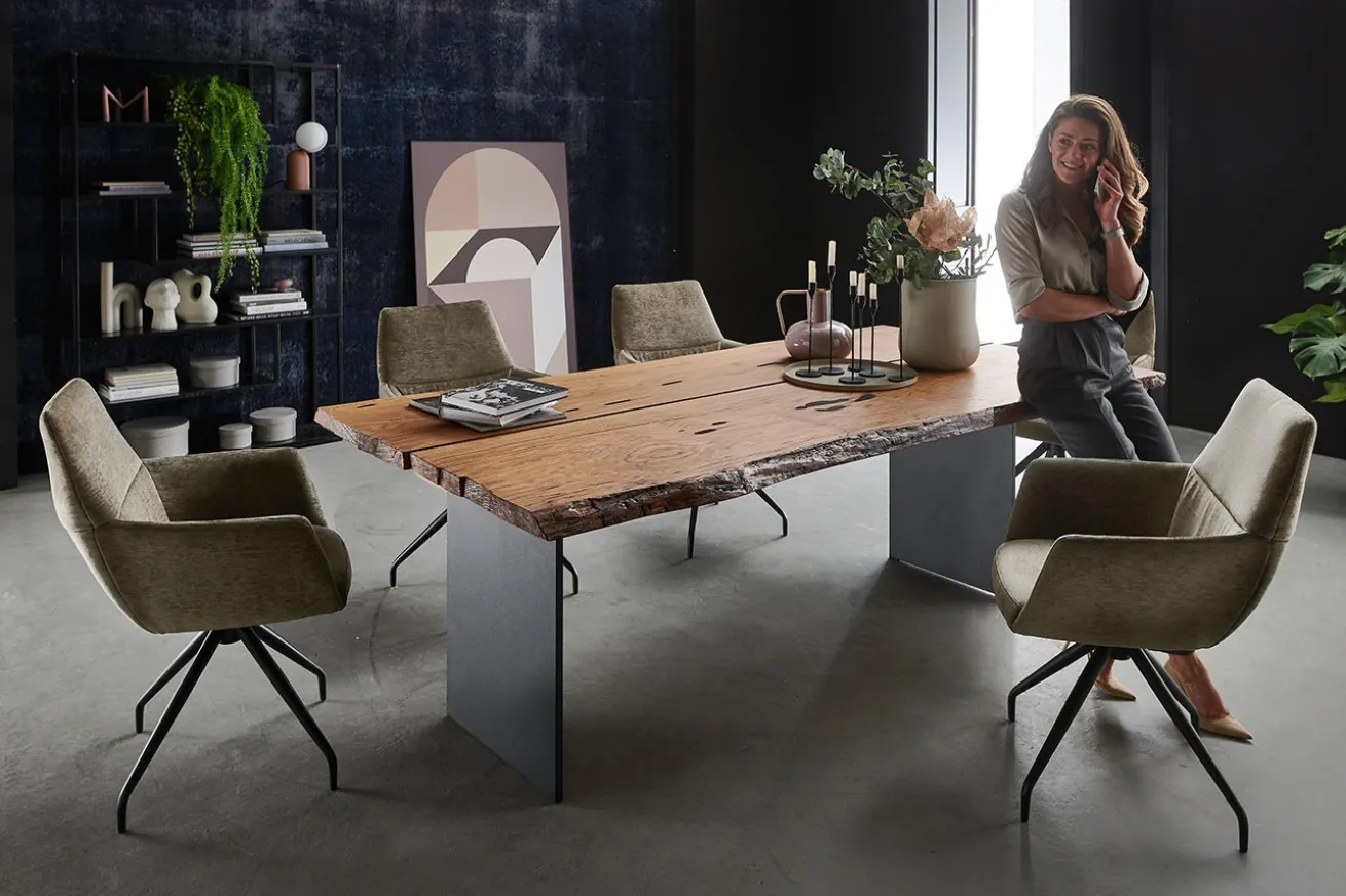 Das markante 4-Fuß-Gestell aus robustem Stahl in Schwarz verleiht diesem Stuhl nicht nur eine solide Basis, sondern verleiht ihm auch einen Hauch von raffinierter Eleganz. Egal, ob Sie sich in Ihrem Büro oder zu Hause befinden, dieser Drehstuhl fügt sich nahtlos in jede moderne Umgebung ein und wird zum Blickfang in jedem Raum.
