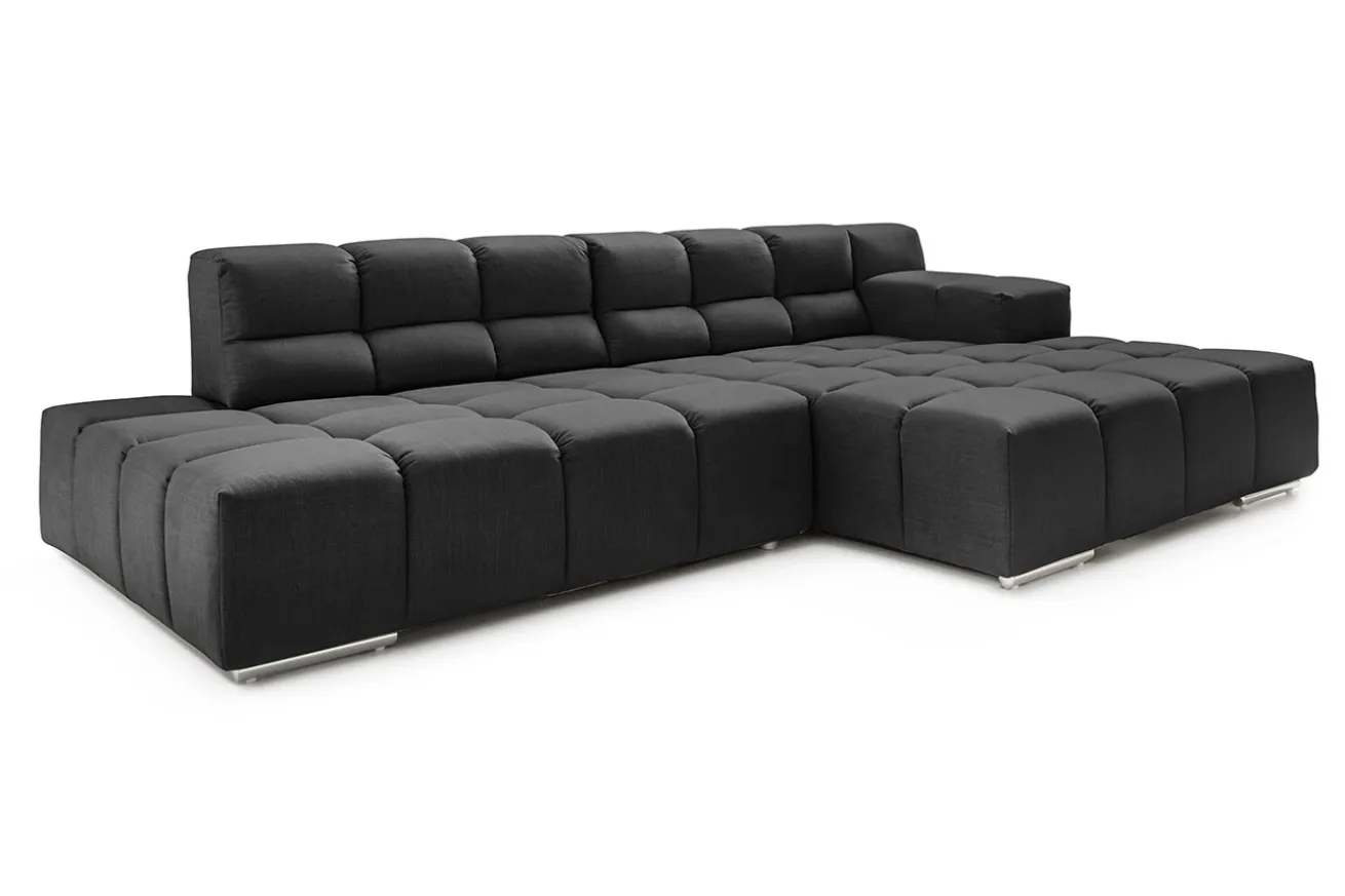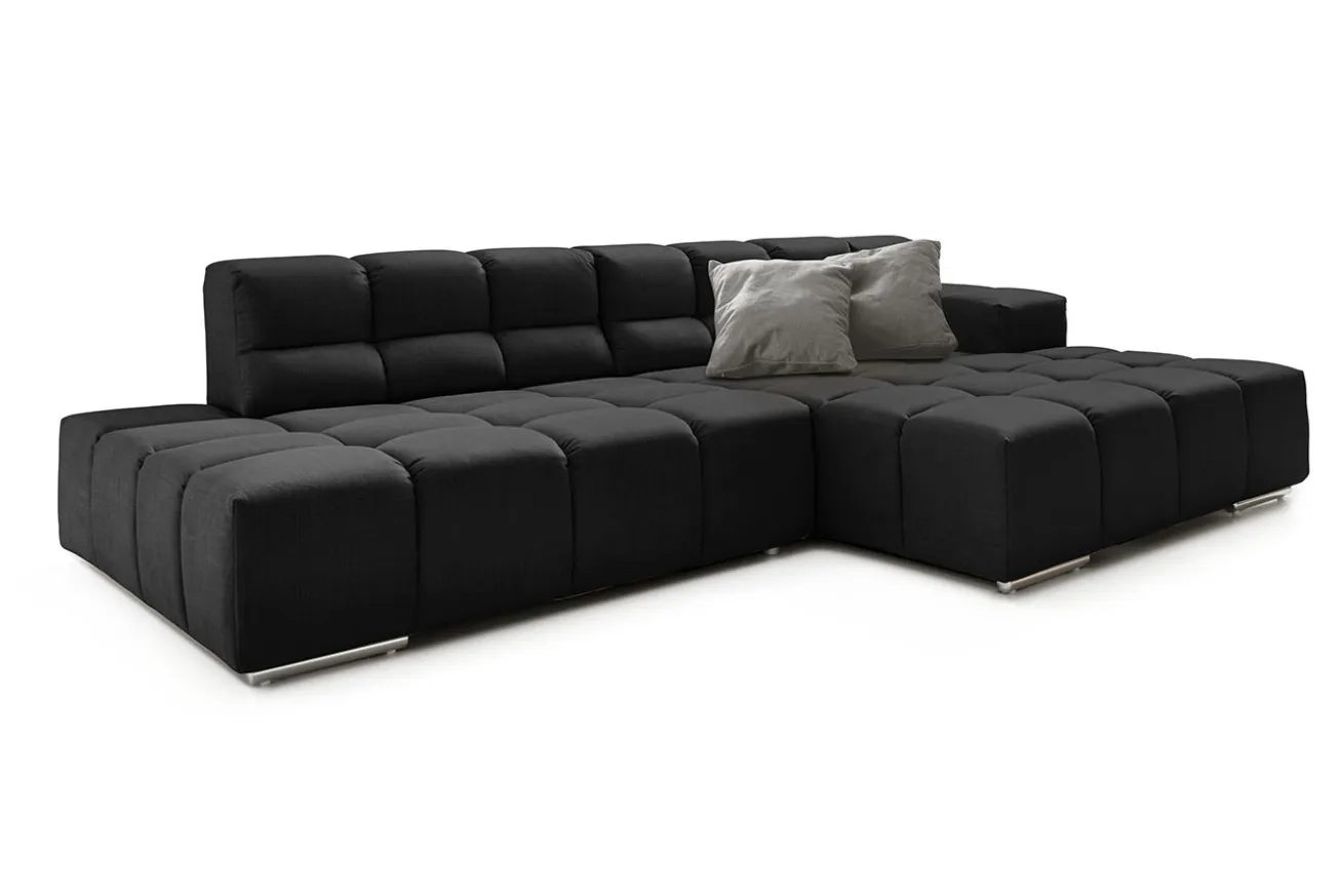 Ein bequemes Sofa genügt nicht nur nach Feierabend sehr gut zum Füße hochlegen und in Ruhe Fernseher schauen, sondern auch für tiefgründige Unterhaltungen mit dem besten Freund. Cube, das dunkelgraue Ecksofa, verspricht mit einer Breite von 286cm, einer Tiefe von 113cm beziehungsweise 169cm und einer Höhe von 70cm nicht nur genügend Platz zum Sitzen, sondern auch zum Füße hochlegen. Egal was für eine Position Sie darauf einnehmen, der anthrazitfarbene Stoff fühlt sich gemütlich an und lädt zu ausgiebigen Kuschelstunden in trauter Zweisamkeit ein. Die Steppung betont den hochwertigen Look. Für weitere Bequemlichkeit sorgt die manuelle Rückentiefenverstellung in der Lehne. Cube ist modulierbar und steht auf verchromten Metallfüßen, weshalb sich das Sofa im Ganzen sowie in Teilen problemlos heben und anders stellen lässt.