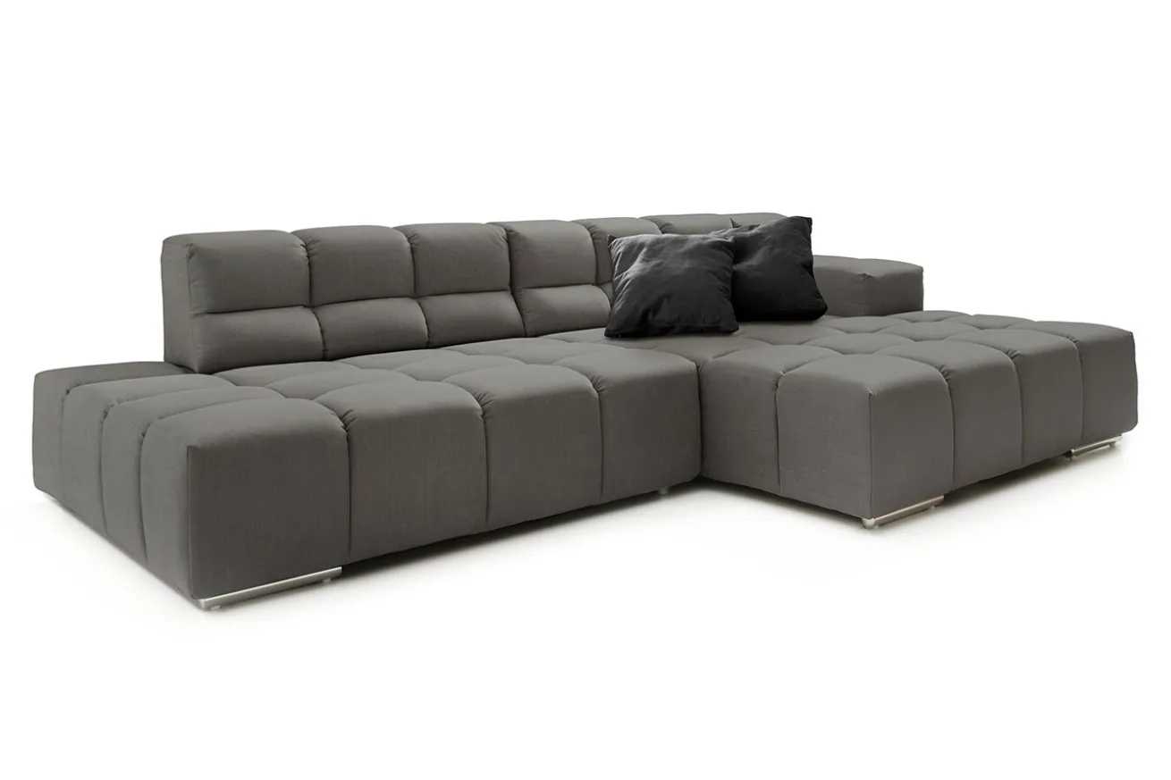 Ein gemütliches Sofa eignet sich nicht nur nach Feierabend hervorragend, wenn Sie die Füße hochlegen und in Ruhe Fernseher schauen wollen, sondern auch, wenn Sie tiefgründige Gespräche mit der besten Freundin führen möchten. Cube, das taupefarbene Ecksofa, bietet mit einer Breite von 286cm, einer Tiefe von 113cm beziehungsweise 169cm und einer Höhe von 70cm nicht nur ausreichend Platz zum Sitzen, sondern auch zum Füße hochlegen. Egal für welche Position Sie sich entscheiden, der dunkle Stoff fühlt sich angenehm weich an und lädt zu ausgiebigen Kuschelstunden zu zweit ein. Die zusätzliche Steppung unterstreicht den modernen Look. Für noch mehr Komfort sorgt die manuelle Rückentiefenverstellung in der Lehne. Cube ist modulierbar und steht auf verchromten Metallfüßen, wodurch sich das Sofa im Gesamten und auch im Einzelnen problemlos heben und anders stellen lässt.