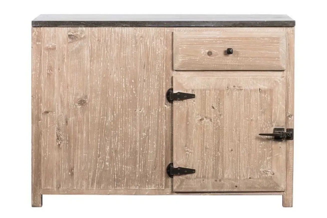 Holen Sie sich den Charme des Landhaus-Stils mit dem Luxus eines modernen Möbels auch auf die überdachte Terrasse. Der Eckunterschrank Montpellier aus leicht pigmentiertem recycletem Kiefernholz macht´s möglich. Eine schwere Steinplatte in dunklen schwarzgrauen Farbtönen sorgt für Aufsehen. In dem unteren rechten Teil ist dieses Küchenmöbel mit einer Tür und einer Schublade ausgestattet. (nicht Winterfest, im Aussenbereich wird das Holz stärker Arbeiten, als im Innenbereich. Es können Spannungsrisse auftreten. Schubladen und Türen sollten in regelmäßigen Abständen überprüft und eingestellt werden)