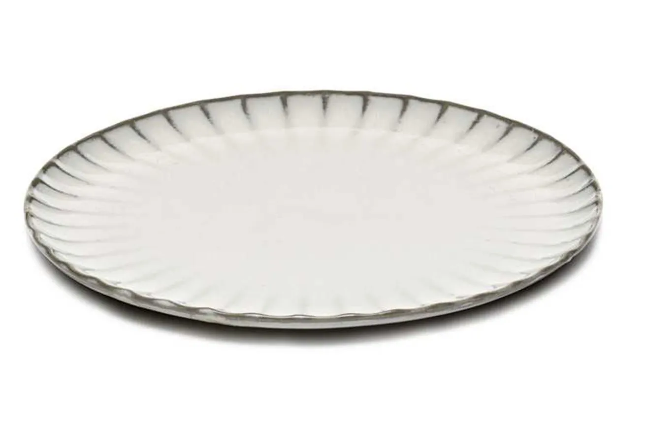 Schlicht und doch besonders ist dieser Speiseteller aus der Inku-Kollektion von Serax. Mit einem Durchmesser von 21cm und einer Höhe von 1,7cm ist der mittlere Teller als Grundlage für die Hauptspeise einfach perfekt. Weißes Steingut mit dunklem Rand. Feine Linien erstrecken sich gleichmäßig und verblassen zur Mitte hin. So zeigen sie mit ihrer Filigranität auf den Hauptgang hin. Das schlichte Muster sowie die Farbe erinnern an Muscheln, die man so gerne am Strand sammelt. Sammeln auch Sie mit dem Geschirr das Herzen Ihrer Gäste, wenn Sie sehen, welch fabelhaftes Geschirr Sie für Ihr Dinner gewählt haben.