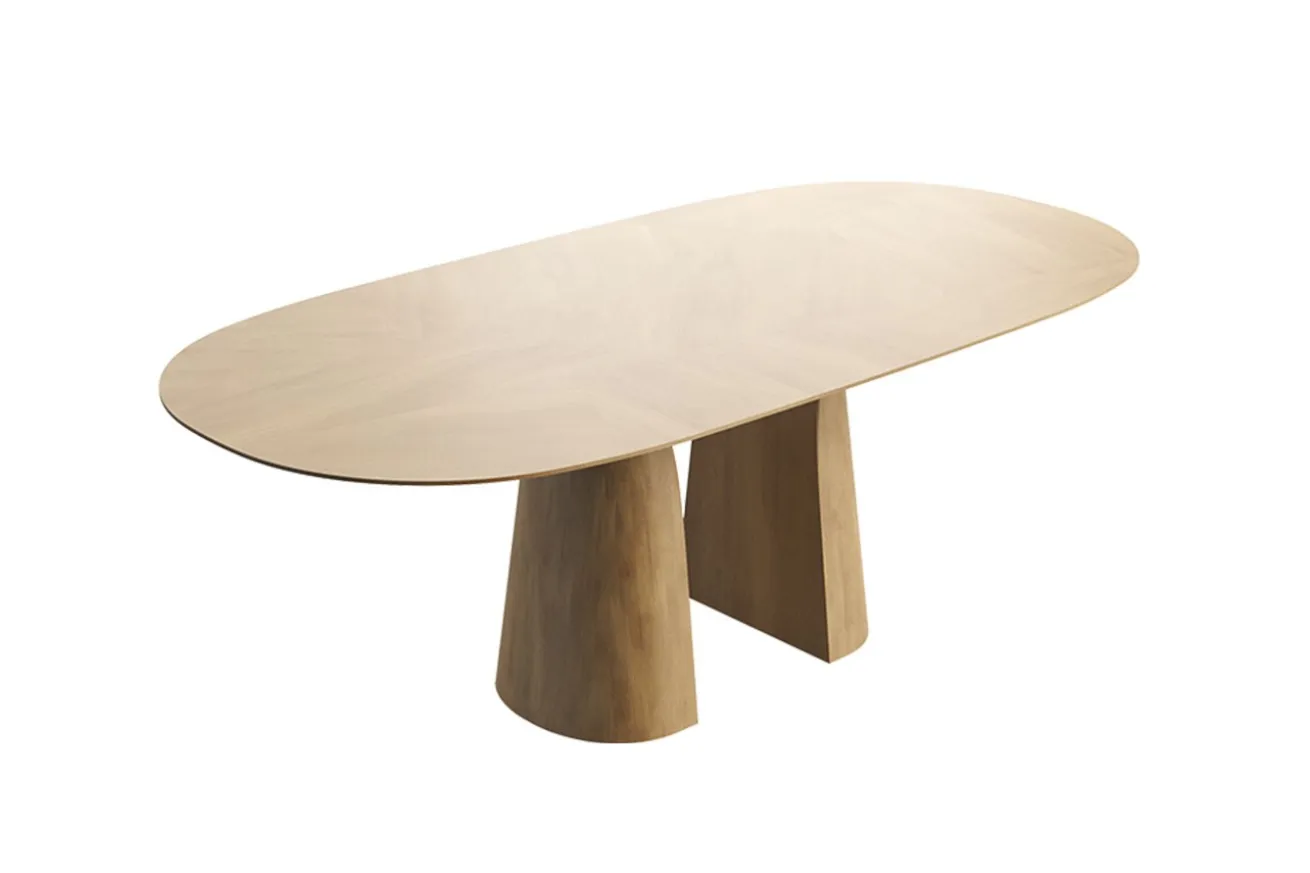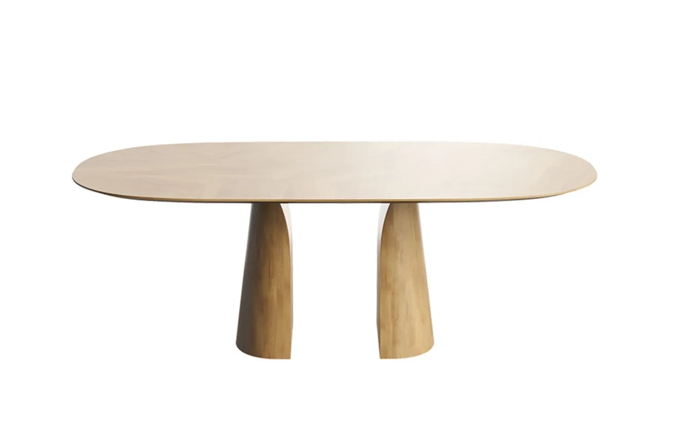 Die geschwungenen Linien und abgerundeten Kanten der Tischplatte sorgen für eine harmonische Ästhetik, während die stabilen, skulptural geformten Beine dem Tisch nicht nur visuelle Leichtigkeit, sondern auch außergewöhnliche Stabilität verleihen. Dieser Tisch vereint Funktionalität und Design in perfekter Balance und fügt sich dank seines zeitlosen Looks nahtlos in verschiedene Wohnstile ein – sei es modern, skandinavisch oder klassisch.
