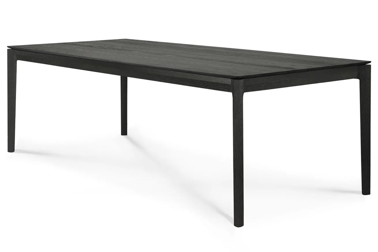 Genau wie der Stuhl ist der Bok Esstisch zu einem unserer charakteristischen Designs geworden. Seine luftige Form und dennoch felsenfeste Konstruktion machen dieses Stück zu einem zeitlosen und bemerkenswerten Tisch. Mit einer Breite von 240cm und einer Tiefe von 100cm bietet der 76cm hohe Tisch ausreichend Platz für große Feiern mit Freunden und Familie an. Das schwarz lackierte Möbelstück aus massiver Eiche überzeugt durch eine zusätzlich gebürtste Oberfläche, wodurch die Maserung deutlich spürbar ist. Dank der schwarzen Farbe eignet sich Bok hervorragend in moderne Milieus. Aber auch in im Skandi-Stil eingerichteten Esszimmern komplettiert er den Naturelook formvollendet.