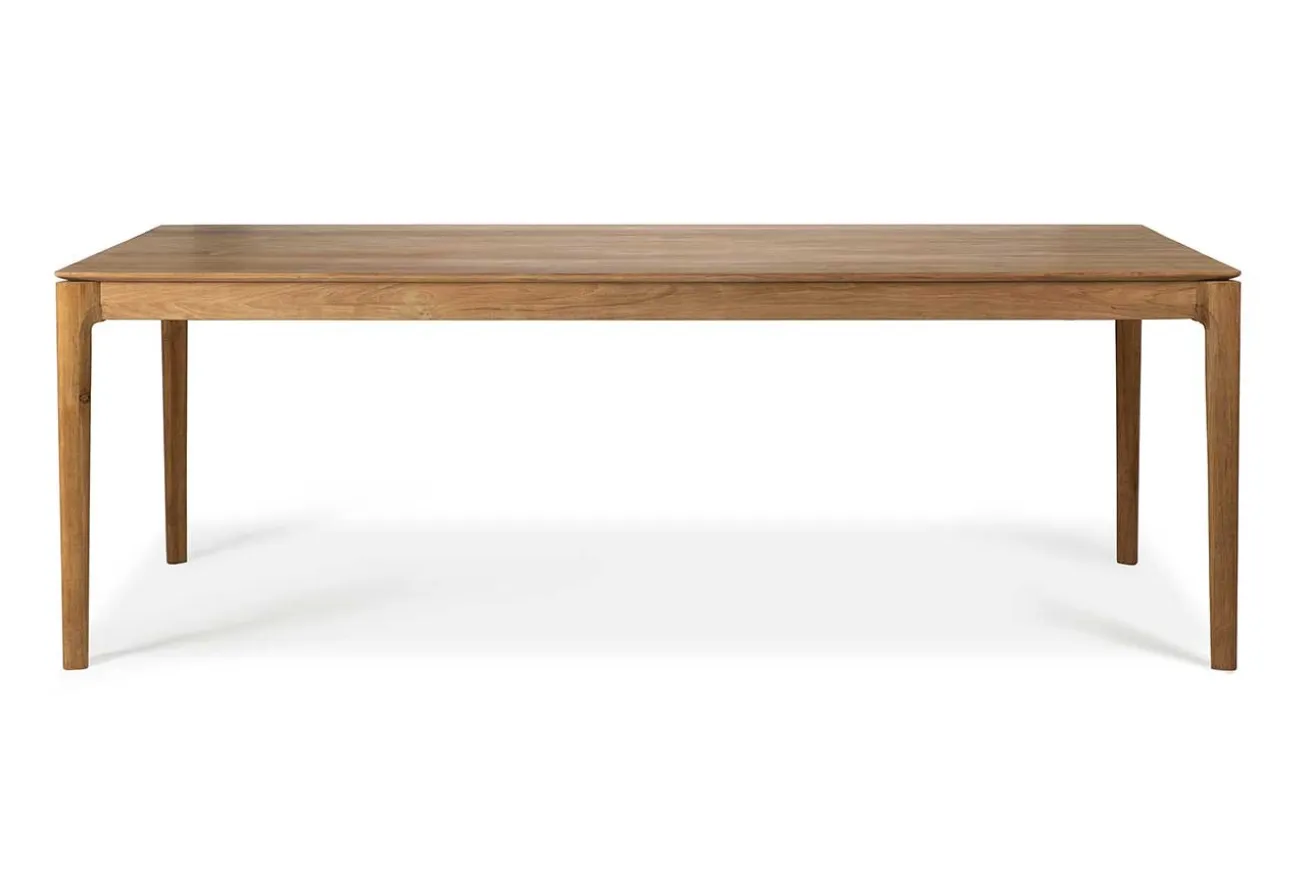 Dieser traumhafte Esstisch aus unserer „Bok“-Kollektion hat die Maße Breite 200cm, Höhe 76cm und Tiefe 95cm und besticht durch sein simples Design. Das aus dem Massivholz Teak entstandene Möbelstück ist ein modernes Massivholzprodukt für drinnen und draußen. Es besteht aus einer Tischplatte und vier Beinen in einer rechteckigen Form. Die Oberfläche wurde geölt, so dass die Naturfarbe dunkler erscheint. Der Holztisch, der als Ess- und Schreibtisch verwendet werden kann, besteht aus pflegeleichtem und witterungsbeständigem Holz. Deshalb können Sie ihn auch problemlos in überdachte Außenbereiche stellen. Mit einem feuchten Tuch oder Staubwedel lässt sich der Massivholztisch reinigen. Gut kombinierbar ist der Esstisch mit Stühlen oder Bänken der gleichen Holzart, aber natürlich auch mit verschiedenfarbigen Sitzmöglichkeiten.