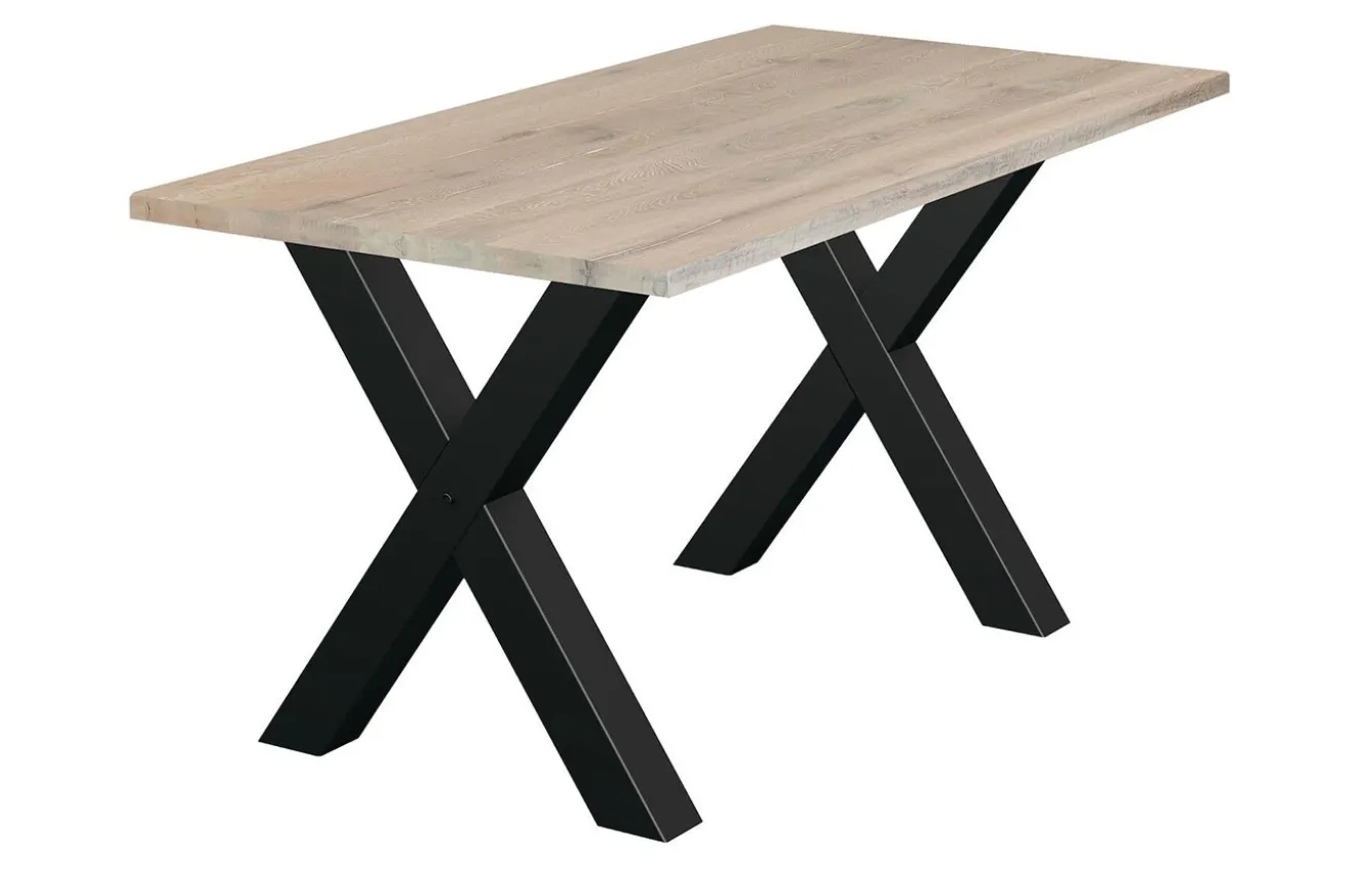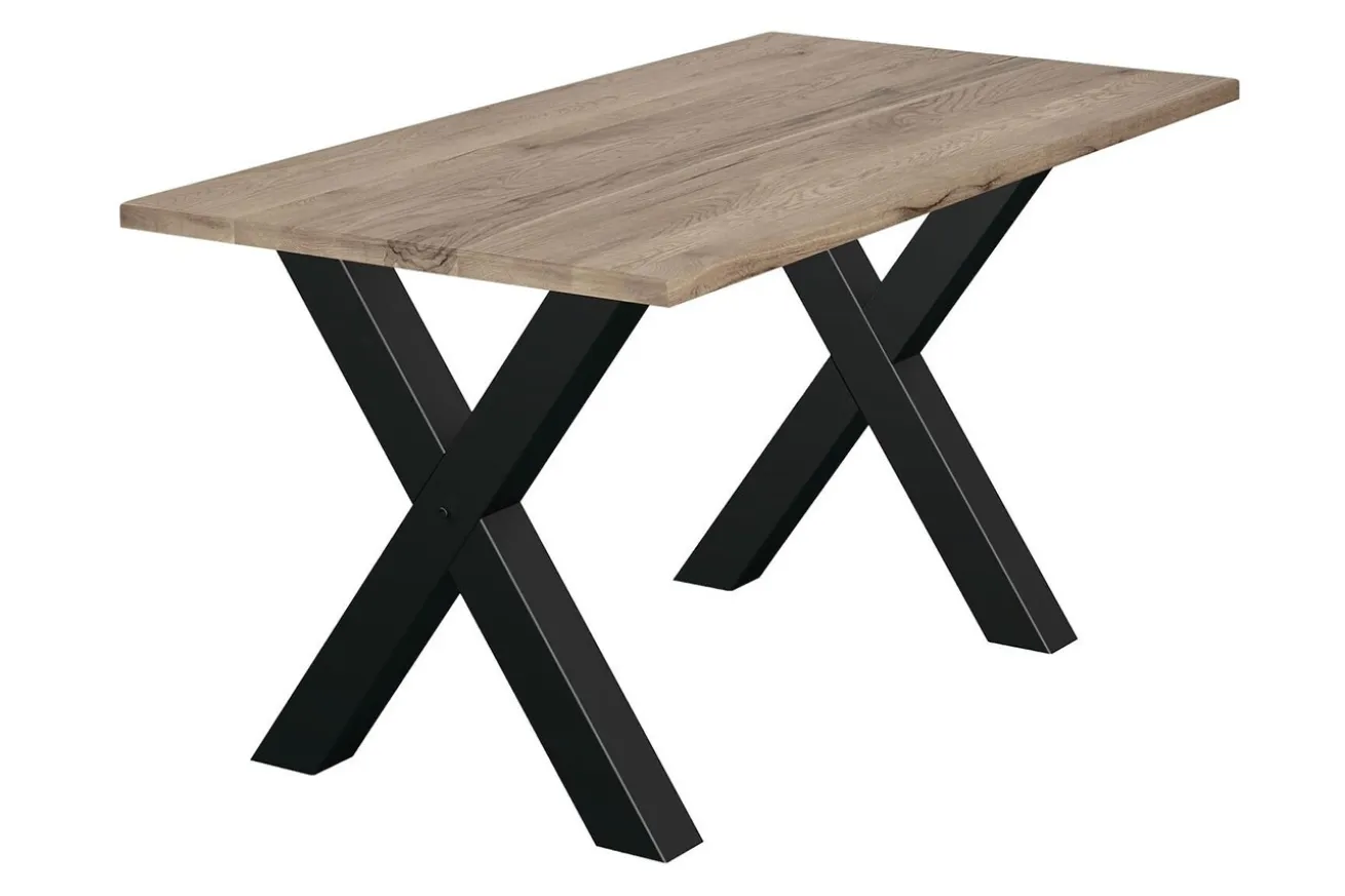 Bringen Sie Stil und Charakter in Ihren Essbereich mit unserem Esstisch aus rustikalem Eichenholz und X-förmigen Metallfüßen in Schwarz. Ein Möbelstück, das nicht nur funktional ist, sondern auch Ihre persönliche Note in Ihr Zuhause bringt und für unvergessliche gemeinsame Mahlzeiten sorgt.