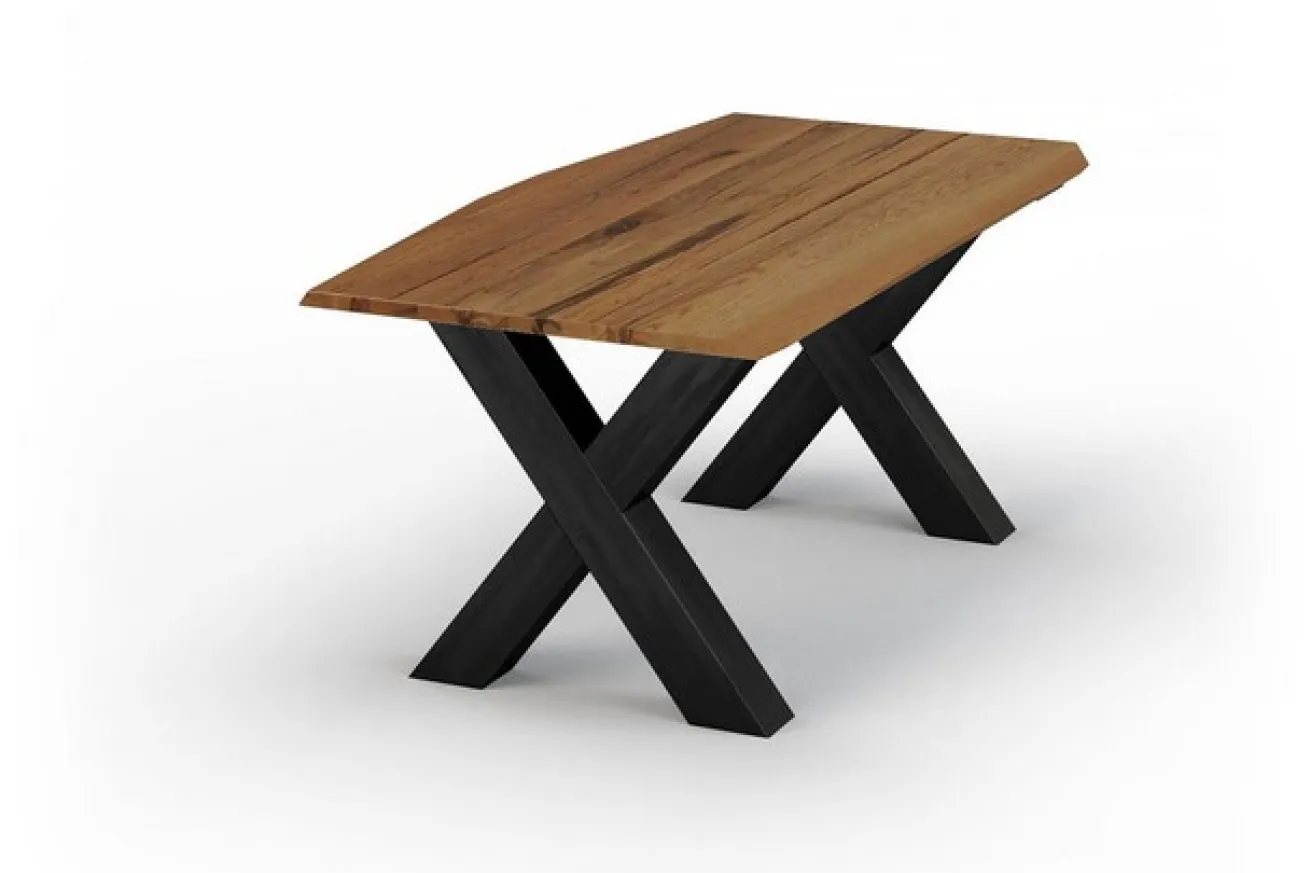 Die beiden x-förmigen Metallfüße in elegantem Schwarz sorgen nicht nur für Stabilität, sondern setzen auch einen modernen Akzent. Sie bilden einen gelungenen Kontrast zur warmen Holzplatte und verleihen dem Tisch eine zeitgemäße Note.
