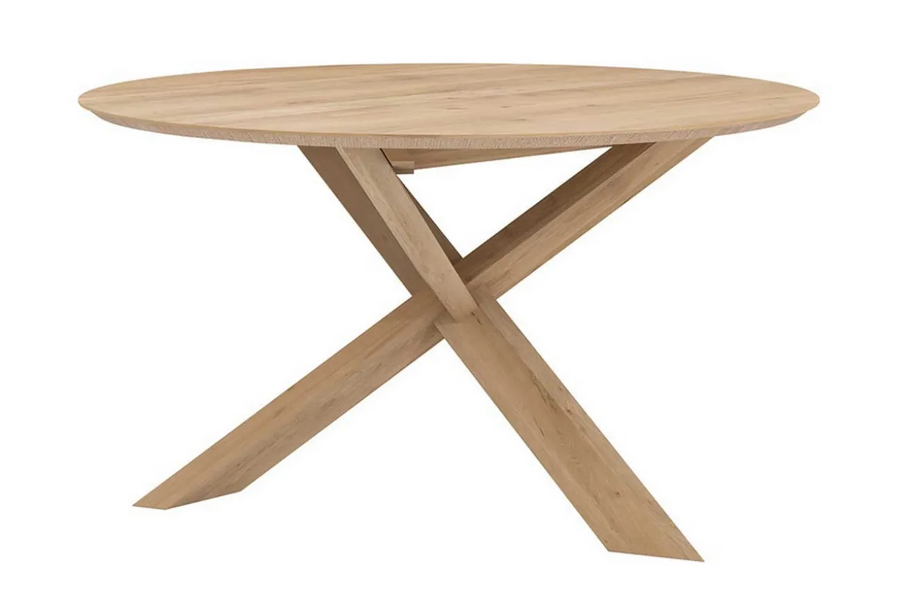Bereichern Sie Ihr im Landhausstil eingerichtetes Wohn- oder Esszimmer mit diesem außergewöhnlichen, runden Tisch aus dem Massivholz Eiche. Er hat einen Durchmesser von 136cm und eine Höhe von 76cm sowie eine Plattenstärke von 2,5cm. Getragen wird der Landhaustisch von einem Holzgestell derselben Art in X-Form. Für den optimalen Schutz wurde die Oberfläche aus Holz durchsichtig lackiert. Die runde Form des Massivholzmöbels sorgt für gesellige Runden mit Freunden und Familie mit direktem Blickkontakt, ohne dass sich irgendjemand ausgeschlossen fühlt.