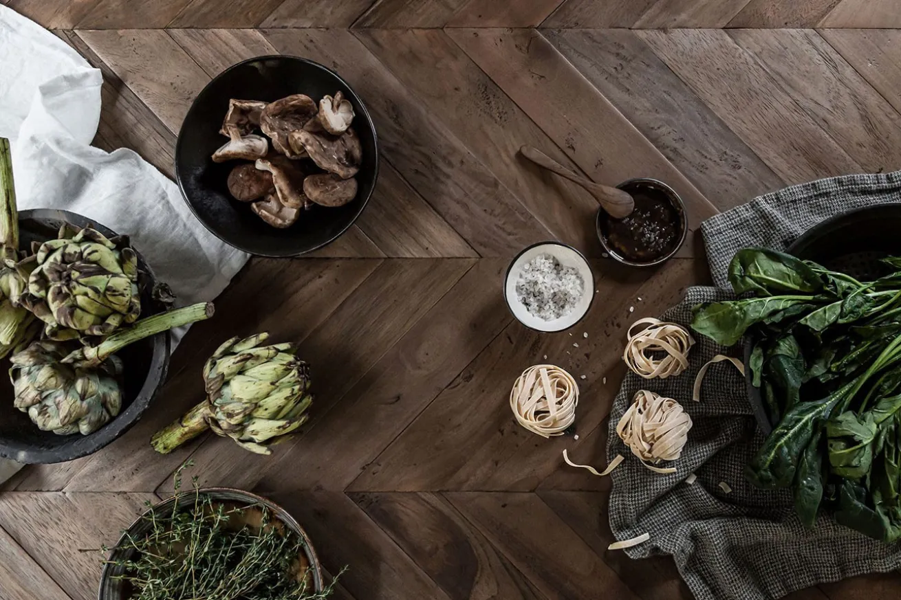 Die Esstischplatte aus unbehandeltem Massivholz in der beeindruckenden Fischgrätoptik ist ein Fest für die Sinne. Die Muster erinnern an traditionelle Handwerkskunst und bringen einen Hauch von Exotik in Ihren Raum. Die unbehandelte Oberfläche bewahrt die Authentizität des Holzes und strahlt eine natürliche Wärme aus, die jede Mahlzeit zu einem Erlebnis macht.