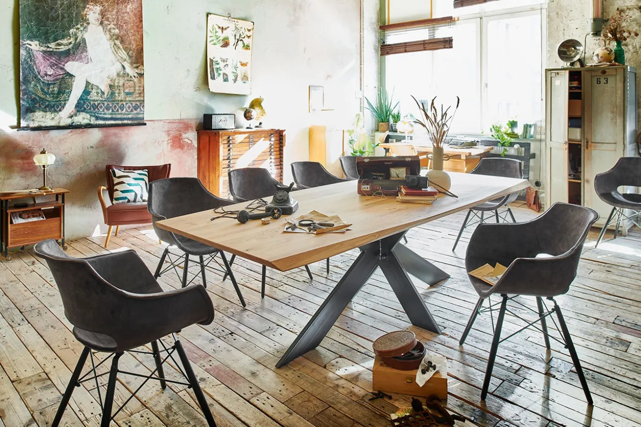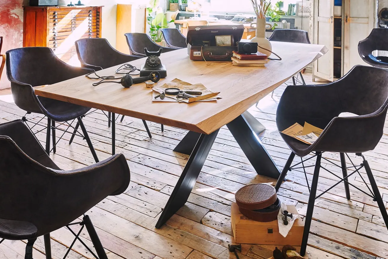 Entdecken Sie die zeitlose Eleganz unseres Esstisches mit Platte aus massivem Wildeichenholz in einer wunderschönen Naturfarbe. Die geölte Oberfläche verleiht dem Tisch nicht nur eine warme Ausstrahlung, sondern schützt das Holz auch vor täglichem Gebrauch.