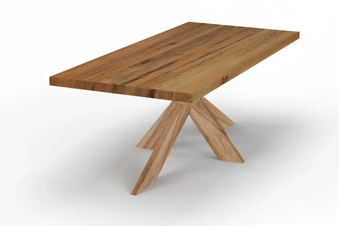 Die Tischbeine dieses Meisterwerks sind ebenfalls aus rustikalem Eichenholz gefertigt und wurden mit derselben Liebe zum Detail geölt und lackiert. Die harmonische Kombination aus geöltem und lackiertem Holz verleiht dem Tisch ein ausgewogenes und raffiniertes Erscheinungsbild. Die Stabilität und Robustheit dieser Beine garantieren eine lange Lebensdauer und einen sicheren Stand.