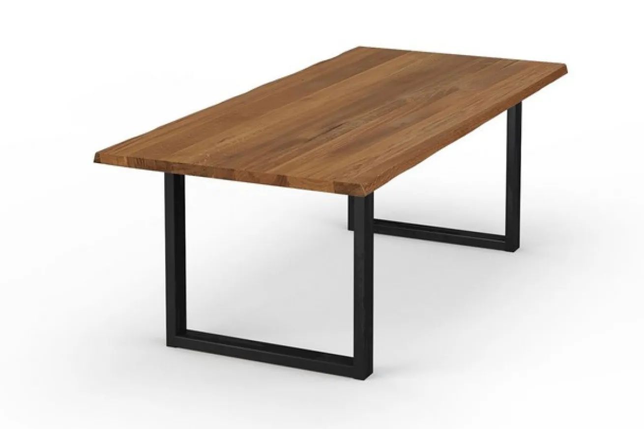 Hat man einen neuen Küchentisch im Haus, deckt man diesen zum Frühstück oder Mittagessen besonders gern und vor allem außergewöhnlich schön mit Geschirr und passenden Servietten. Damit auch Sie sich täglich an einem Esstisch aus Holz erfreuen können, bieten wir Ihnen Lincoln an. Dieses Schmuckstück hat eine Massivholzplatte aus Wildeiche, deren Oberfläche mit einem Öl-Wachs verarbeitet wurde und somit dunkler erscheint. Diese wird von 2 Stahlfüßen in schwarz getragen und verleihen dem Möbelstück etwas Leichtigkeit. Denn von außen betrachtet schaut der moderne Esstisch gar nicht so schwer aus. Aber das ist er, denn hierbei handelt es sich um ein massives Möbelstück für Küche und Esszimmer, egal ob modern oder rustikal.