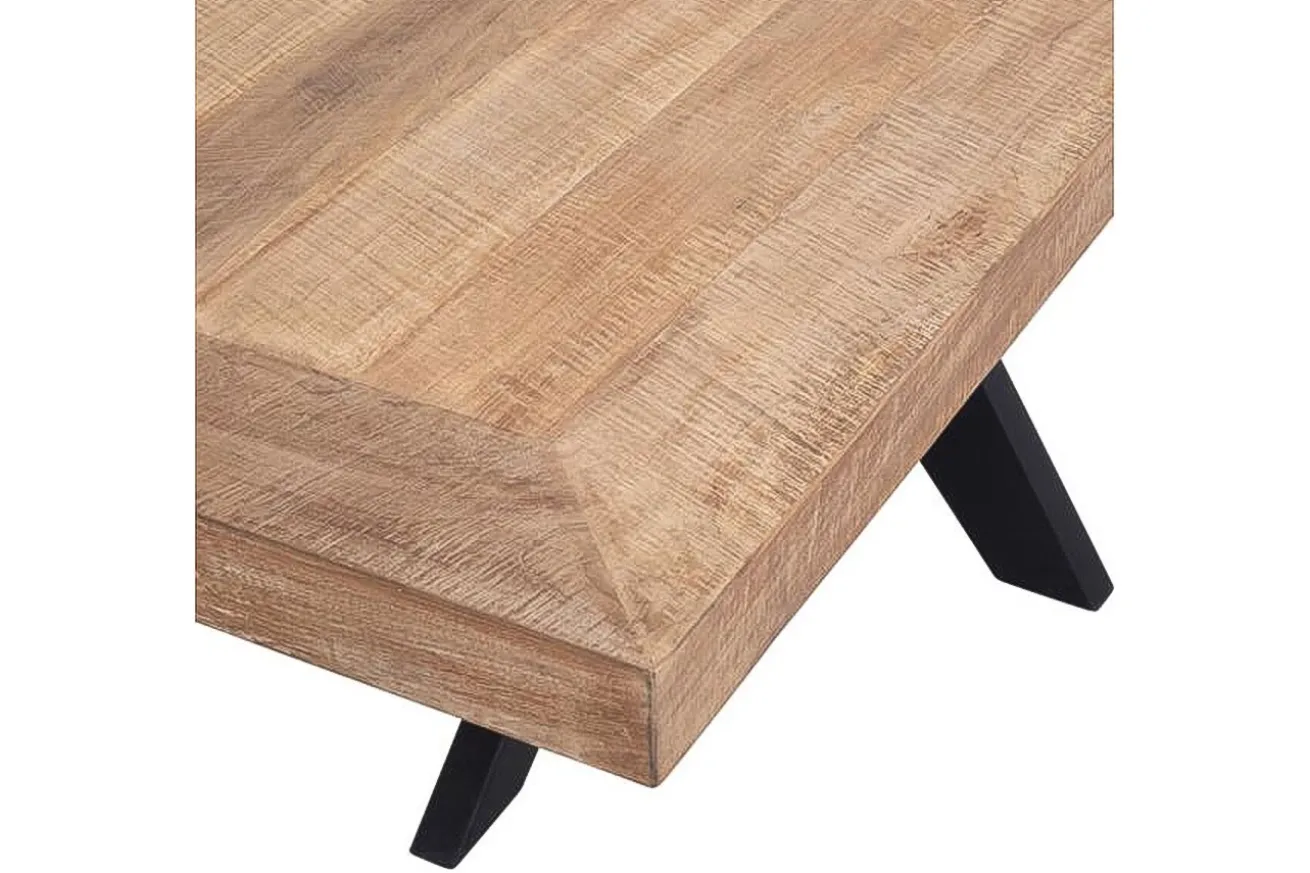 Getragen wird diese Meisterleistung der Handwerkskunst von einem Mittelfuß aus schwarzem Metall, der nicht nur eine solide Basis bietet, sondern auch einen markanten Kontrast zur natürlichen Schönheit des Holzes bildet. Die Kombination aus Teakholz und Metall verleiht dem Tisch eine zeitgemäße Ästhetik und eine faszinierende visuelle Dynamik.