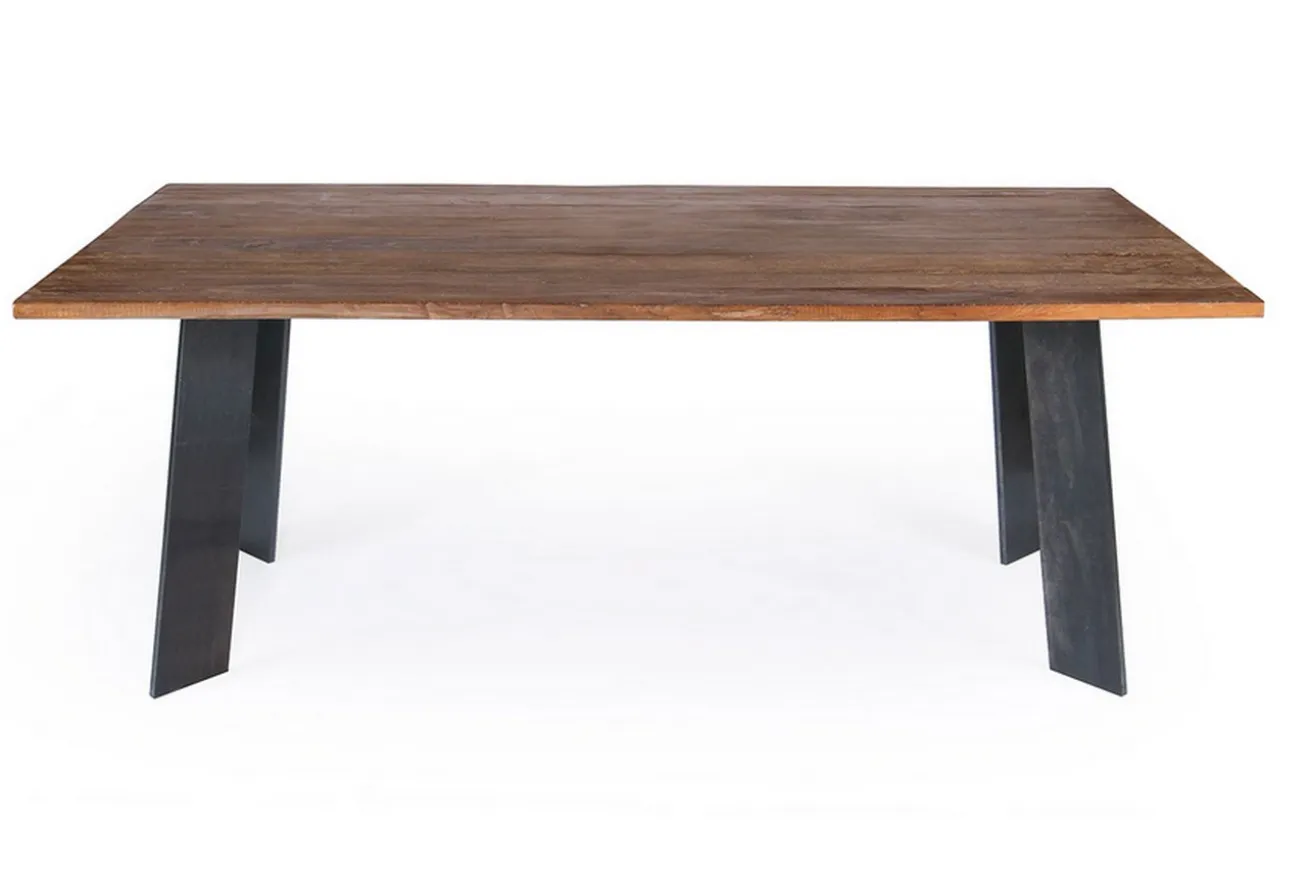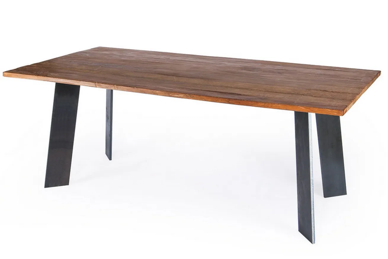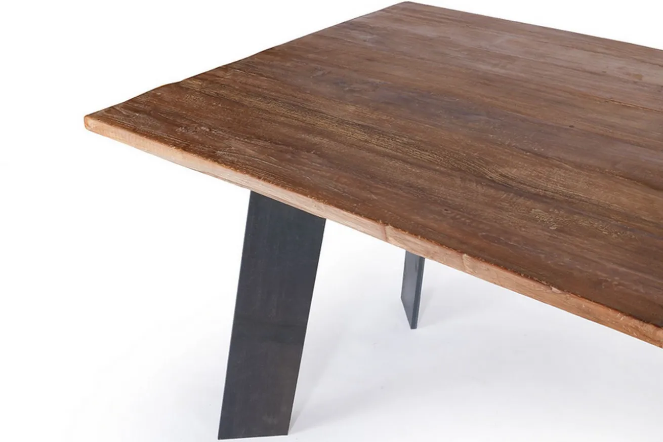 Wenn Sie auf der Suche nach einem außergewöhnlichen Möbelstück sind, dann sind Sie bei uns richtig! Die Tischplatte ist aus urigen alten Teakholzbänken gefertigt. Sie hat eine Breite von 200cm, eine Tiefe von 100cm und eine Stärke von 3,5cm. Bei der Fertigung der Tischplatte haben wir besonderen Wert auf die Erhaltung der ursprünglichen Gebrauchsspuren des Holzes gelegt. Deshalb ist die Oberfläche unbehandelt und kommt in ihrer natürlichen Rustikalität daher und Sie können das dunkle Holz mit fester Sturktur und fast schwarzen Maserung problemlos bewundern, egal ob beim Essen oder Arbeiten. Dank der ausgiebigen Maße eignet sich der Tisch für relativ große Esszimmer. Hierbei ist es aber egal, ob es modern ist oder rustikal eingerichtet. Das Möbelstück erhält durch die vier schwarzen und geölten Füße aus Rohstahl so oder so einen gemütlichen Look.
