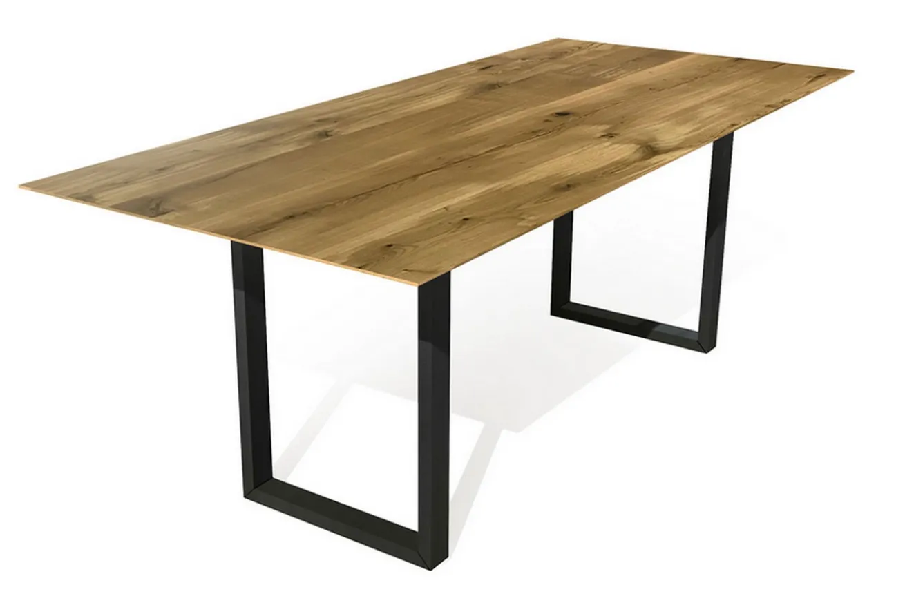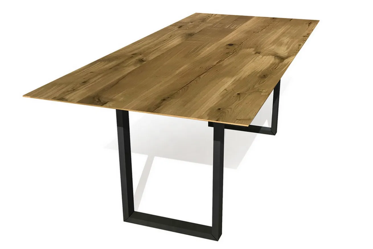 Wer würde nicht alles Geld der Welt geben, um so einen außergewöhnlich schönen Esstisch zu bekommen? Also wir schon! Unser Esstisch aus astiger Eiche mit Stahlfüßen hat die Maße Breite 140cm, Tiefe 90cm und Höhe 76cm sowie Stärke 3cm und eignet sich daher in Esszimmern, egal ob groß oder klein, perfekt. Das Produkt hat eine Tischplatte aus dem Massivholz Eiche, welches die am häufigsten vorkommende Baum- und Holzart in Deutschland ist. Unsere Platte kommt in ihrer natürlichen Farbe samt gleichmäßiger Maserung. Die Fläche besteht aus mehreren Holzbohlen, die zusammengepresst die unikate Platte darstellen. Die Oberfläche ist unbehandelt. „Astig“ rührt daher, da die Astlöcher und von der Natur gegebenen Holzstrahlen vorzufinden sind und dunkler erscheinen. Zudem zeichnet sich die Holzplatte durch eine schweizer Kante aus, was bedeutet, dass der Tischrand abgeschrägt nach innen unten geht und so die Stärke der Platte zunächst nicht sichtbar ist. Getragen wird besagte Massivholzplatte von zwei Stahlfüßen, die rechteckig und dunkelgrau sind. Das Produkt passt perfekt in den Landhausstil, aber auch in moderne Einrichtungen. Das Massivholzmöbel verzieht sich kaum und ist auch gegen Umwelteinflüsse resistent.