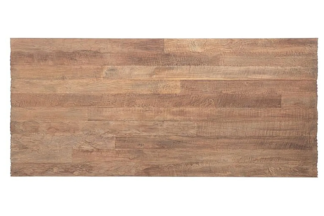 Die Tischplatte besteht aus einzelnen, verschiedenen großen Bohlen von Teakholz, die zusammengefügt wurden, um eine faszinierende Optik zu schaffen. Jede Bohle erzählt ihre eigene Geschichte und trägt zur Einzigartigkeit des Tisches bei. Die natürliche Farbe des Teakholzes strahlt Wärme und Authentizität aus und verleiht Ihrem Esszimmer einen Hauch von rustikalem Charme.